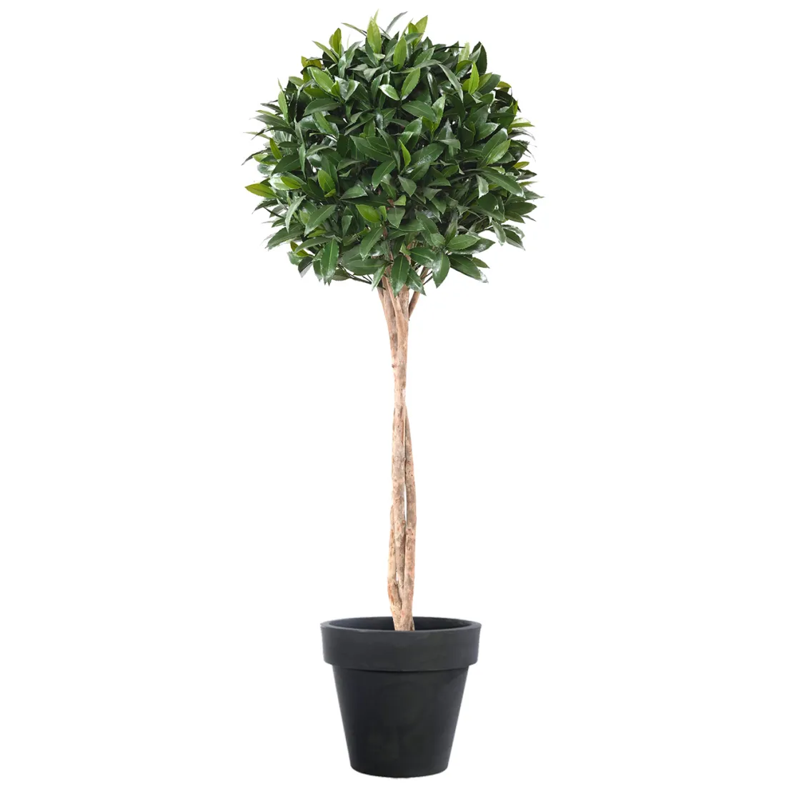 Convient pour l'extérieur. Ce laurier sauce artificiel tige a 3 Troncs en bois entrelacés et un feuillage en polyéthylène, matière plastique. Livré dans un pot plastique lesté. ( plantes artificielles ).