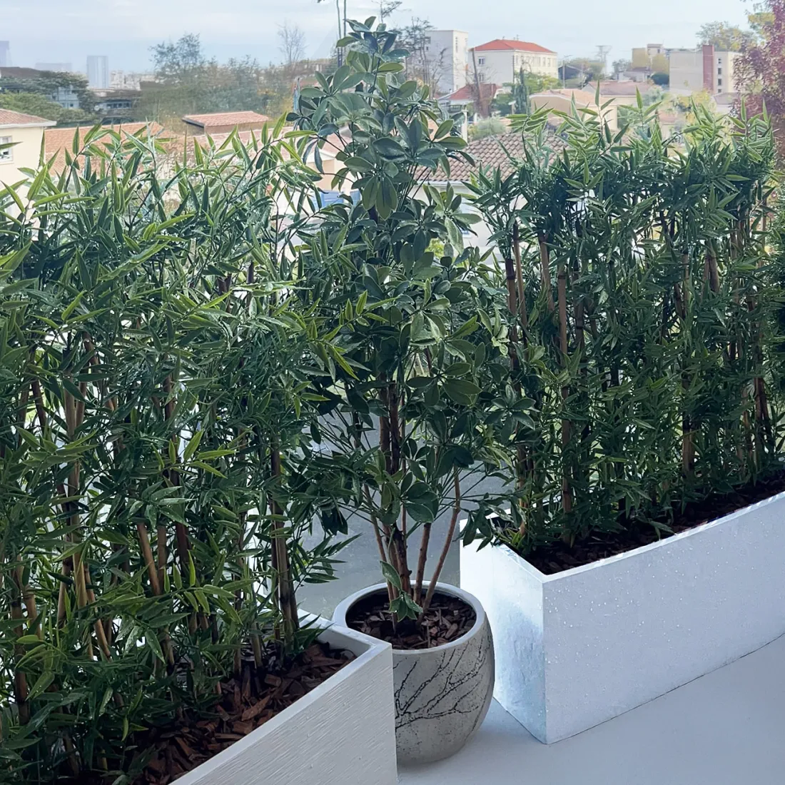 HAIE artificielle BAMBOU dense japenese plast 150 cm largeur 110 cm mis en situation HAIE artificielle BAMBOU dense japenese plast 90 à 180 cm largeur 110 cm HAIE artificielle BAMBOU dense japenese plast 150 cm largeur 110 cm