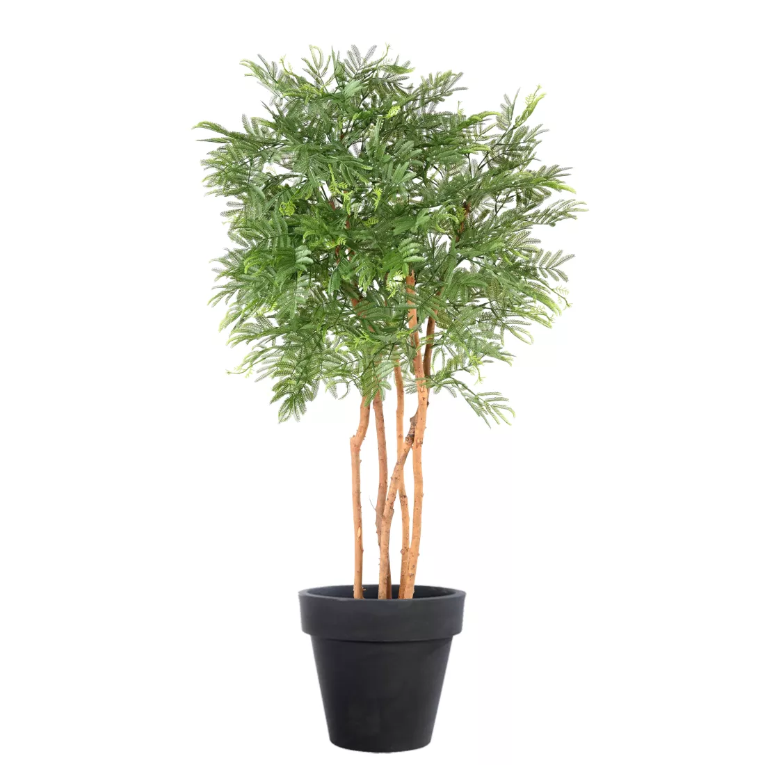Mimosa artificiel livré dans un pot lesté il mesure 150 ou 170 cm de hauteur pour une envergure de 90 cm. Ses troncs sont en bois naturel et son feuillage en polyéthylène. convient pour l'exterieur