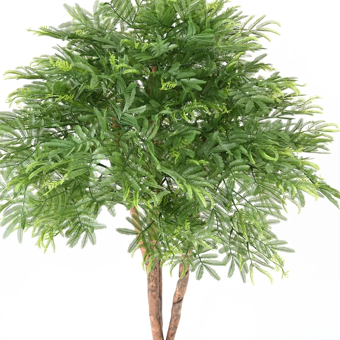 Les 3 troncs en bois naturel qui composent notre mimosa donne un aspect naturel incontestable si l'on observe les forêts sauvages d'Acasias (réel nom du mimosa). Ceux-ci sont quelques fois plantés à quelques centimètres les uns des autres. Le feuillage en PE est aussi une belle réussite et une imitation fidèle des feuilles délicates qui ornent l'arbuste. L'allure arrondie de sa ramure peut évoquer une sensation de plénitude et de douceur, ce qui donne à l'arbre artificiel une apparence accueillante et apaisante. Vous vous demandez pourquoi le nom de tamarin est associé avec le Mimosa emblème du sud ? Tout simplement parce l'arbuste exotique possède des feuilles qui ressemblent beaucoup à celles de l'acacia. Il est possible de trouver un faux arbre de mimosa grande taille.