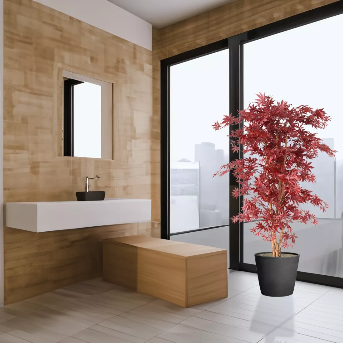 Cette érable artificielle est composé d'un tronc en bois naturel et d'un feuillage en tergal d'une couleur rouge automnale . Décliné en 150 cm ou 180 cm de hauteur pour une envergure de 75 à 90 cm. Livré dans un pot PVC (support de plantation) plantes artificielles  Arbuste décoratif grâce à ses feuilles découpées