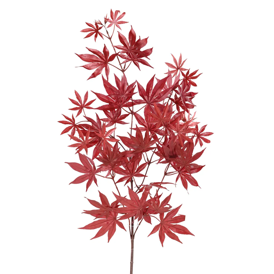 Magnifique feuillage synthétique de coloris rouge, très ressemblant à la couleur admirée à l'automne lorsque les forêts se parent de mille feux. Ce feuillage artificiel possède des feuilles de la taille de celles d'érable du japon. Bien découpé la finition est considérée comme haut de gamme. C'est la même catégorie de feuillage utilisée pour élaborer les arbustes d'érable artificiels sur tronc bois que nous proposons sur le site.