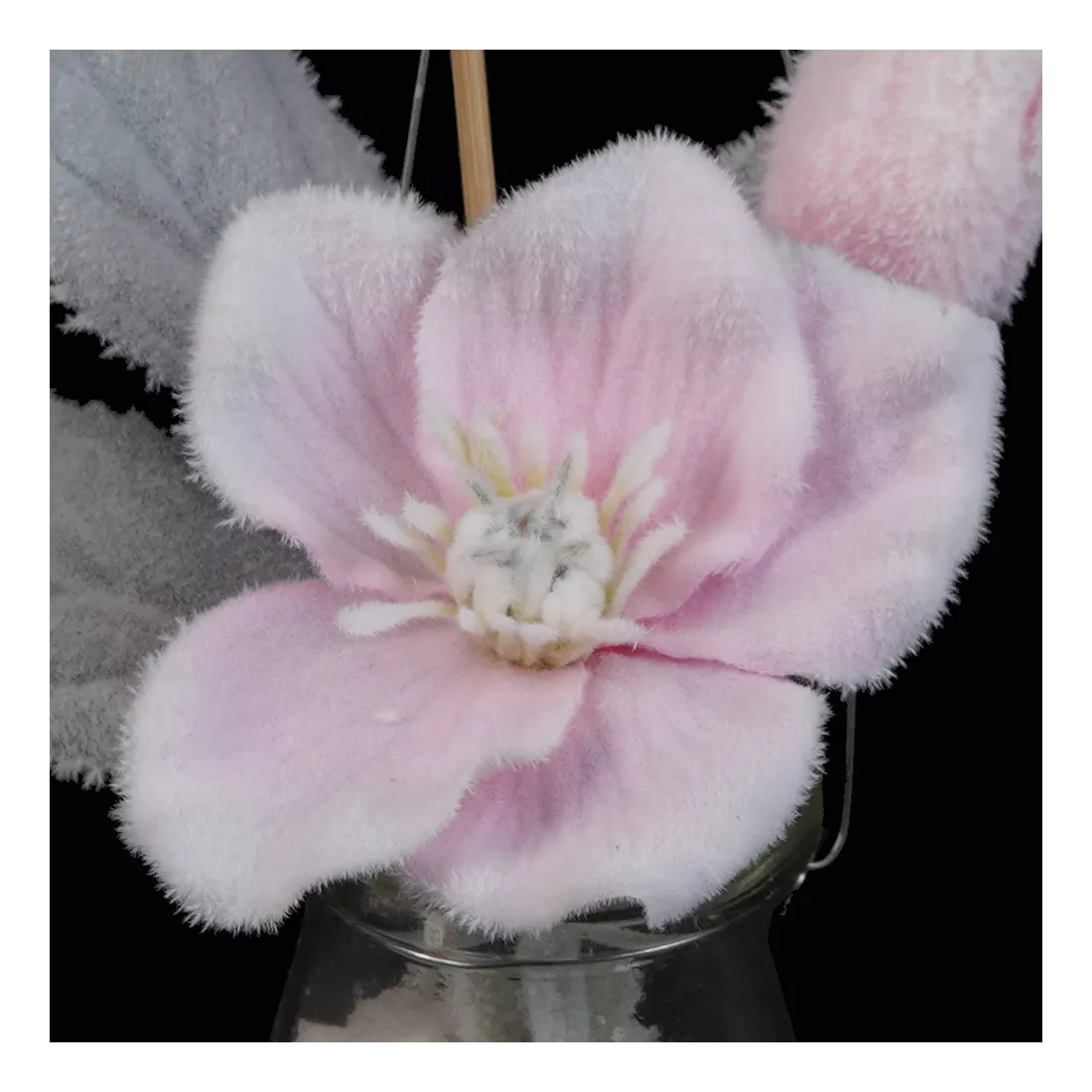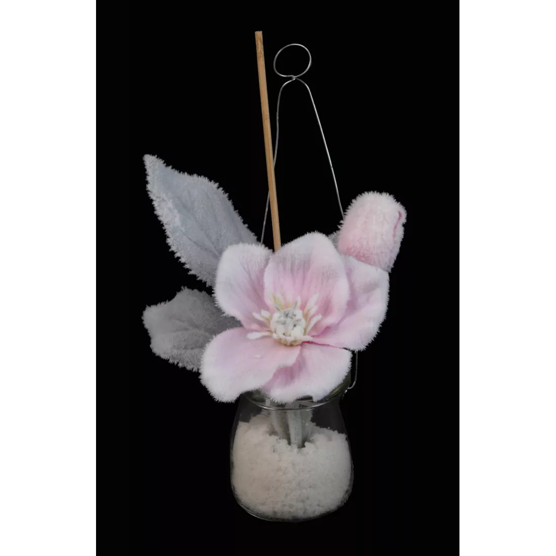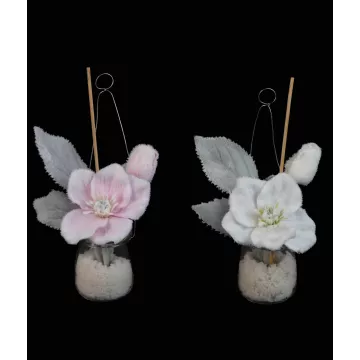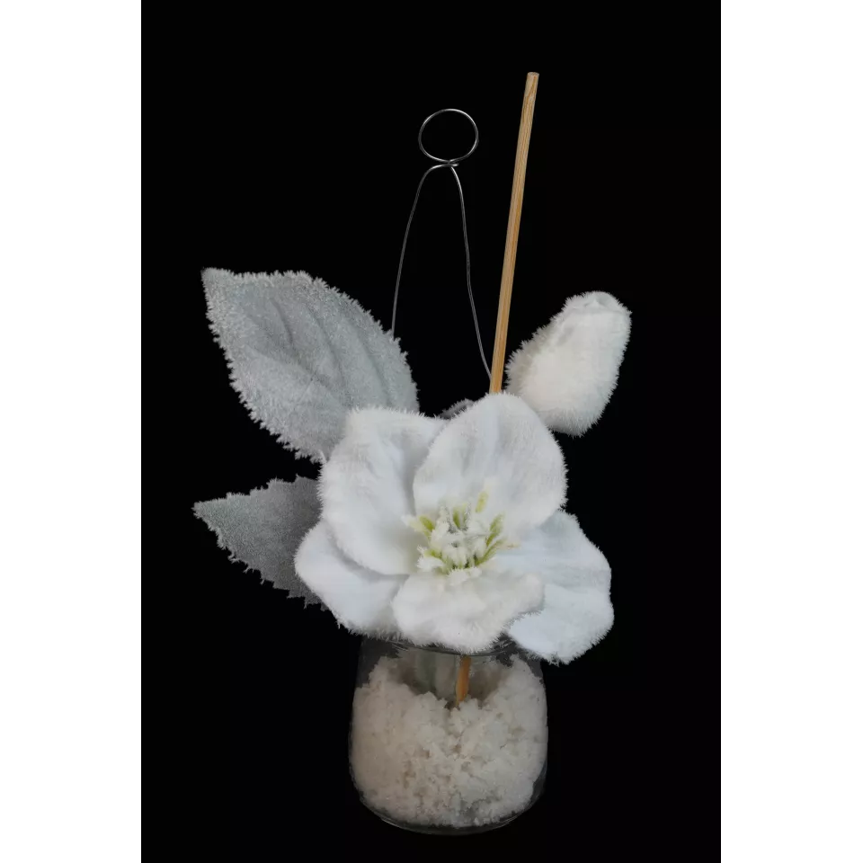 Hellebore artificielle en pot verre à poser ou à suspendre 23 cm