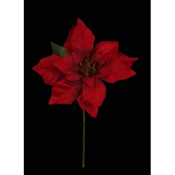 La plante de Poinsettia est aussi appelée étoile de Noël; on la trouve d'ailleurs fleurie surtout pendant cette période. La tige proposée est courte, ornée d'une feuille. Elle peut être insérée dans un vase, seule, ou être mélangée avec d'autres feuillages et fleurs artificiels. Pour les fêtes de fin d'année, glisser quelques fleurs rouge de Poinsettia dans un sapin est une manière originale et élégante de le décorer. Bouquet, vase, table, buffet, arbre de Noël ... une bonne manière de changer d'apparence et de recycler cette fleur en tissu pendant de nombreuses années.