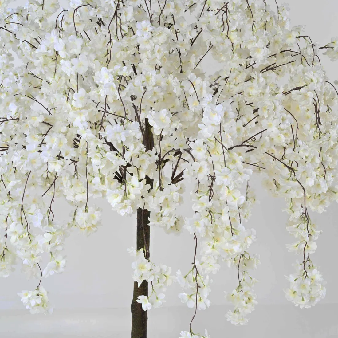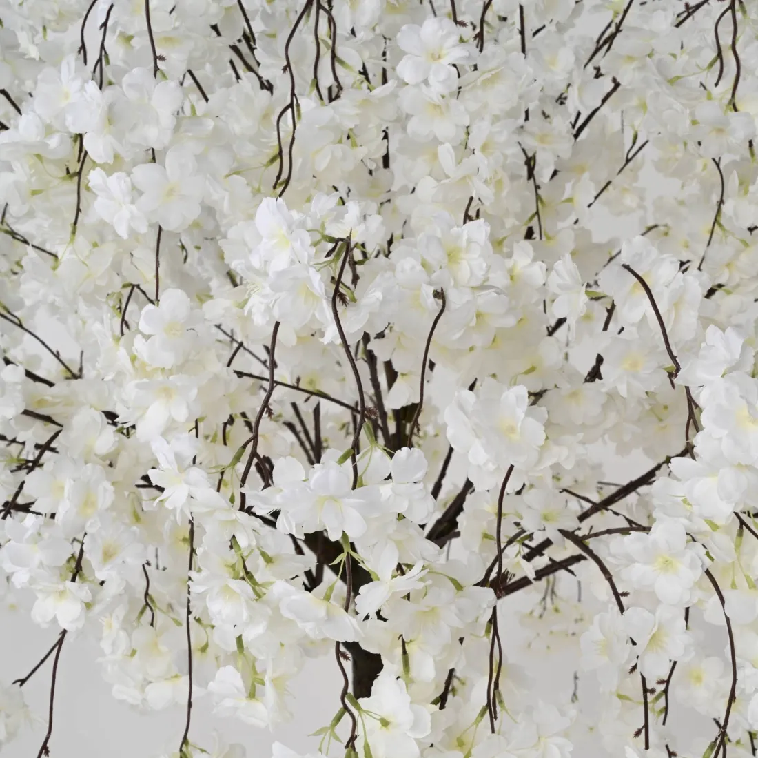 Le point fort de ce cerisier synthétique réside dans l’abondance de fleurs conçues pour retomber avec souplesse. Ce n’est peut-être pas notre imitation la plus réaliste, mais cela est vite oublié car c’est sans doute celle qui offre l’effet de foisonnement le plus spectaculaire. Son objectif principal est de créer un effet décoratif remarquable. De ce fait, notre cerisier blanc de style pleureur, est parfait pour agrémenter et embellir un magasin ou un hall d'accueil. Très chic il décore à merveille une boutique de parfumerie, ou une bijouterie. Il convient également de rappeler que le cerisier évoque fortement la culture asiatique, et plus particulièrement japonaise. L'arbuste artificiel fleuri est donc très adapté pour une enseigne qui distribue des articles nippons, notamment. Utilisez-le comme point focal de votre surface de vente mais aussi comme pièce maitresse de votre présentation marketing et commerciale. Si besoin, il est possible de le surélever dans un pot haut. Grâce à leur orientation vers le bas, les fleurs artificielles du cerisier s'exposent sous leur plus beau profil. Pour un visuel encore plus marquant, incorporez une guirlande lumineuse mini leds légère pour ne pas alourdir les branches.