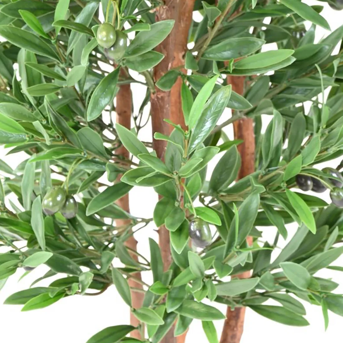 Cette olivier artificiel tronc noueux est composé de bois naturel  et d'un feuillage en tergal, avec des fausses olives de couleur vertes et noires. Proposé pour cet arbre artificiel de 140/150 à 210 cm de hauteur. Livré dans un support plastique ( plantes artificielles )