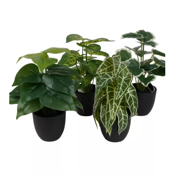 Feuillage textile - Plante livrée dans un support plastique ( plantes artificielles )Dimensions: Hauteur totale 60 cm, Envergure 50 cmPot plastique 11 cm diamètre 10 cm Matière: feuillage textile