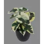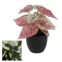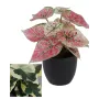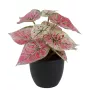 Fausse petite plante tout à fait mignonne. Ce mini Caladium est panaché 3 coloris, vert, blanc avec une dominance de rose. Les feuilles sont en polymère thermoplastique très fin qui permet de nombreuses fantaisies. L'utilisation de cette matière, sous cette forme, est récente dans le monde des plantes artificielles. Cela donne un rendu réaliste et un touché doux. ce petit Caladium synthétique est prévu pour être surélevé. Vous pourrez ainsi le disposer comme décoration de table, le positionner sur une étagère, sur un bar, un table de chevet, un bureau, ou une salle de bain. Prêt à poser, vous n'aurez rien à faire. Les plantes bigarrées sont les stars actuellement. Seules ou mélangées avec de fausses plantes vertes, c'est à vous de choisir. S'accorde magnifiquement avec l'Oxalis pourpre.