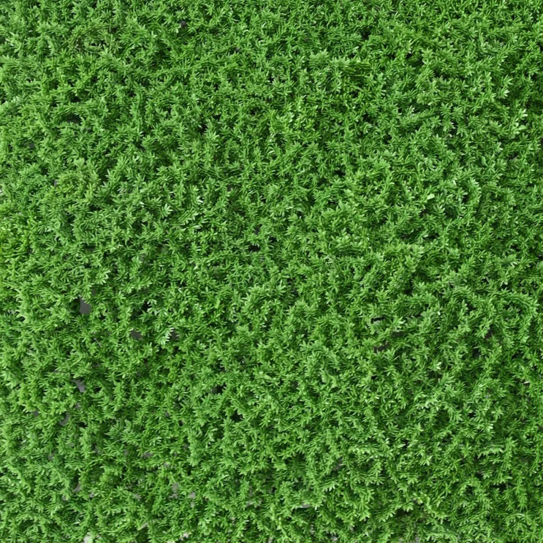 La Sphaigne est une mousse que l'on trouve à l'état naturel sur les tourbières. Le tapis de fausse mousse Sphaigne couvre 0.25 m2. La plaque est déclinée en 2 coloris, vert tendre et vert plus foncé. Ce mur végétal de mousse artificielle est très dense; il est composé de nombreux brins de Sphagnum éclatés très serrés. Le carré de Sphaigne est composé de parties plates et bosselées. L'épaisseur n'est pas régulière pour une meilleure imitation. Très décorative, cette Sphaigne est visuellement douce et structurée. Les deux couleurs se mélangent pour réaliser un patchwork de mousse synthétique. Les plaques se clipsent les unes avec les autres sans démarcation.