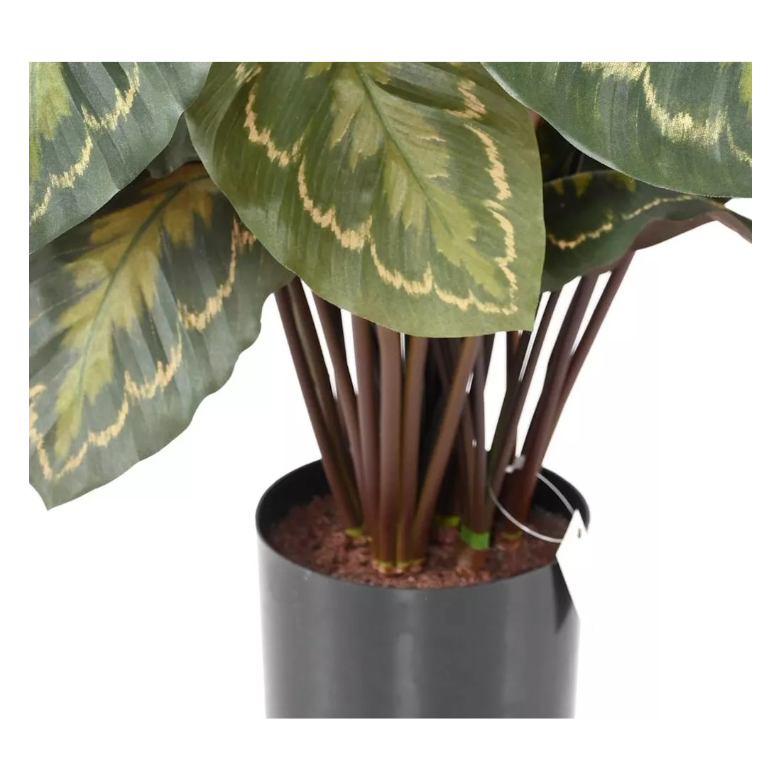 Calathea artificiel 70 cm de hauteur et 50/60 cm de largeur Composé d’un ensemble de belles feuilles synthétiques en tergal (tissu). Le feuillage est fixé sur des tiges . Livré dans un support de calage en plastique, la taille indiquée est comprise de la base du pot jusqu'au sommet du feuillage de la plante.
