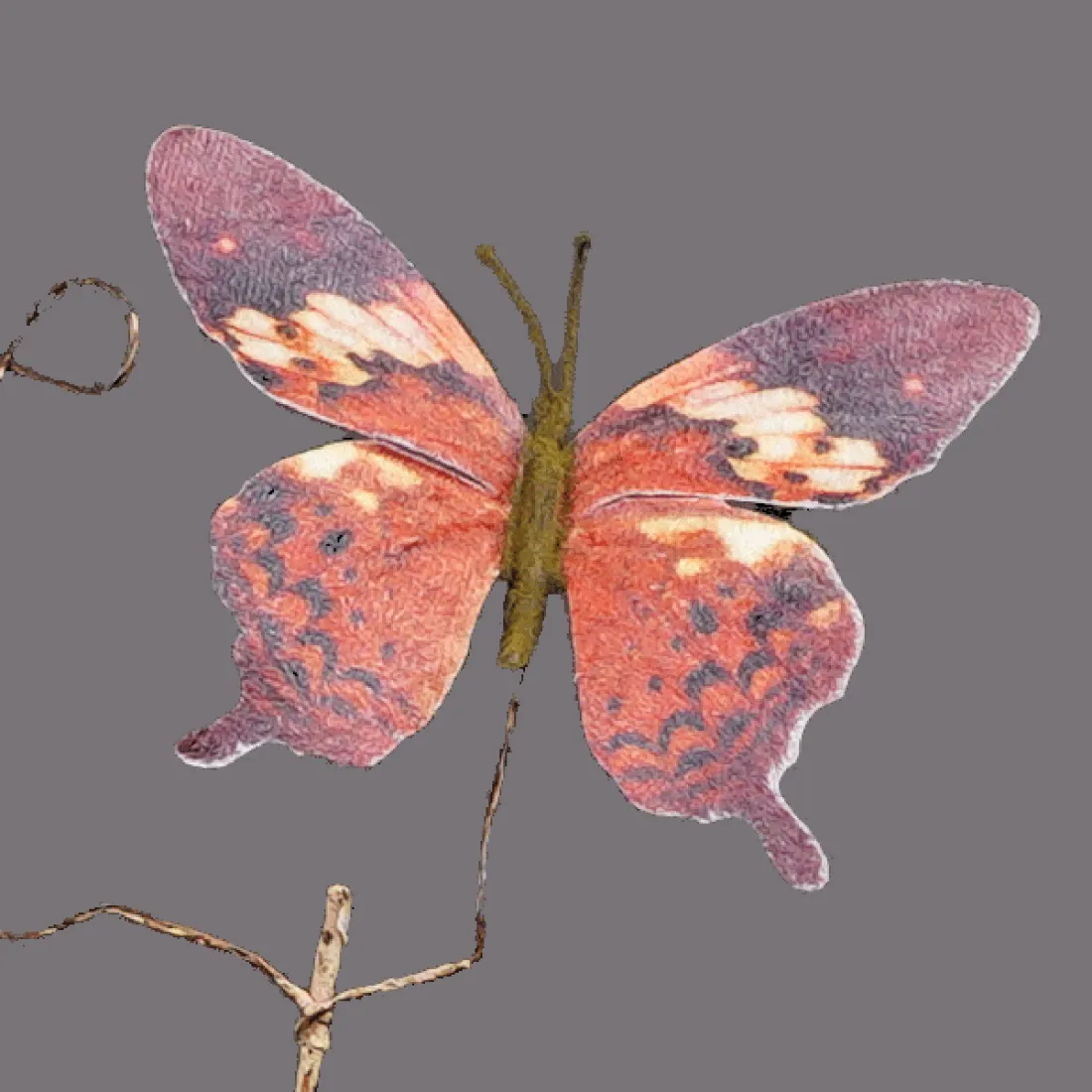 Une danse de couleurs avec les tons dégradés du pèche au bordeaux violet en passant par le rouille. Ces petits insectes artificiels sont bien découpés, vous pourrez moduler les tiges pour les placer à votre convenance. Ajoutez ces papillons à vos fleurs et plantes artificielles pour créer des compositions florales uniques. Embellissez votre journée avec un sourire en découvrant ces farceurs ailés qui apportent une légèreté pleine d'esprit à votre décoration intérieure. Déployez votre créativité et offrez une ambiance poétique à vos espaces avec ces créatures ailées.