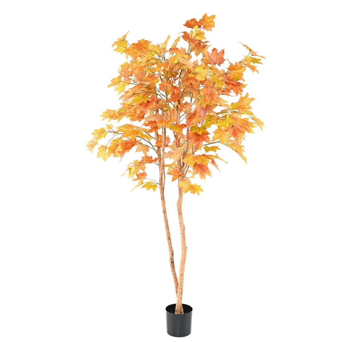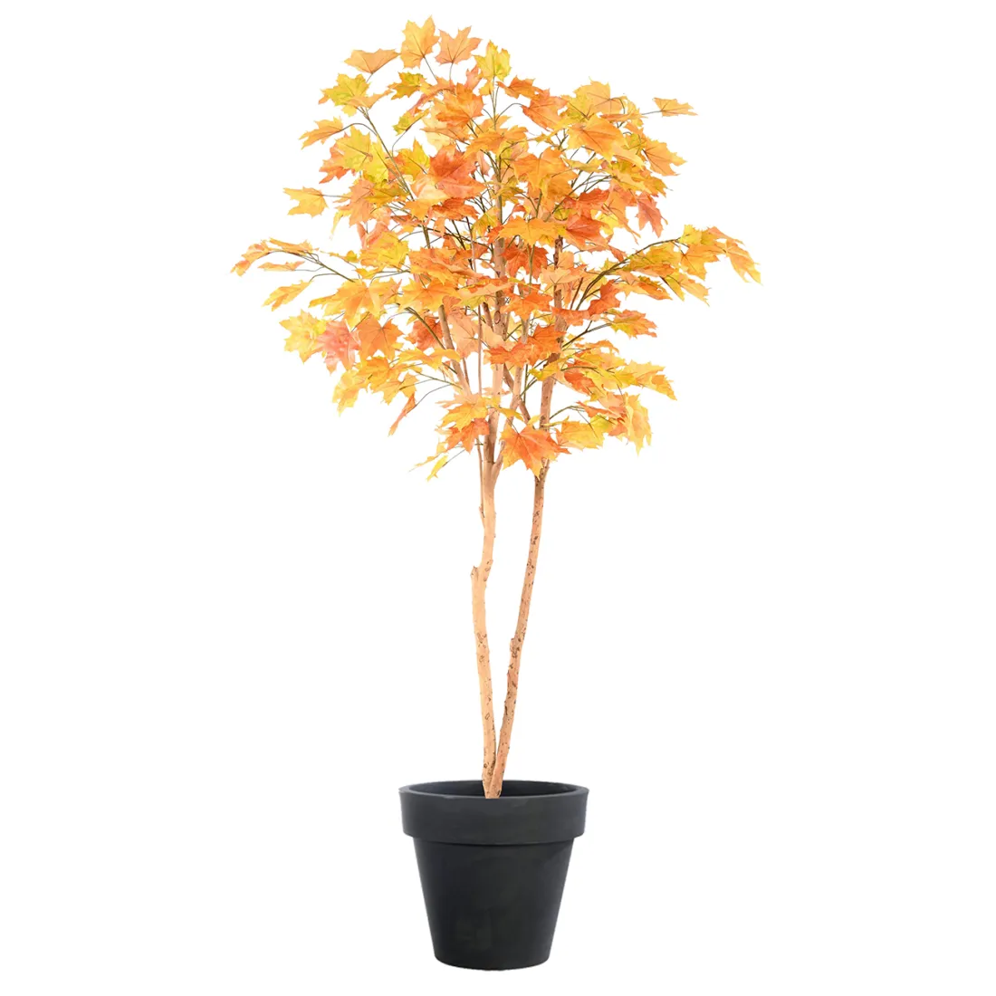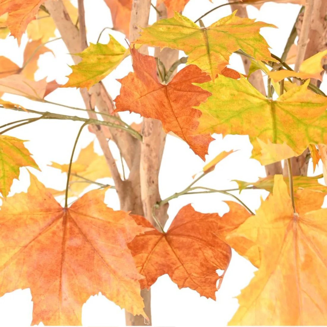 Faites entrer la beauté automnale tout au long de l'année pour apporter des couleurs chaleureuses à vos intérieurs. Ce bel arbre factice de grande taille est une imitation du vrai platane commun, bien connu dans nos régions. Le feuillage en tissu est bien dessiné, il possède quelques jolis détails tels que les nervures et le dégradé des teintes. Les nuances sont déclinées du vert au jaune jusqu'au rouille. Cela lui donne un contraste visuel unique. Le tronc en 2 parties, arbore un séduisant ton clair. Planter dans un cache pot d'au moins 50cm de diamètre pour adapter le volume à l'ampleur de l'arbuste.