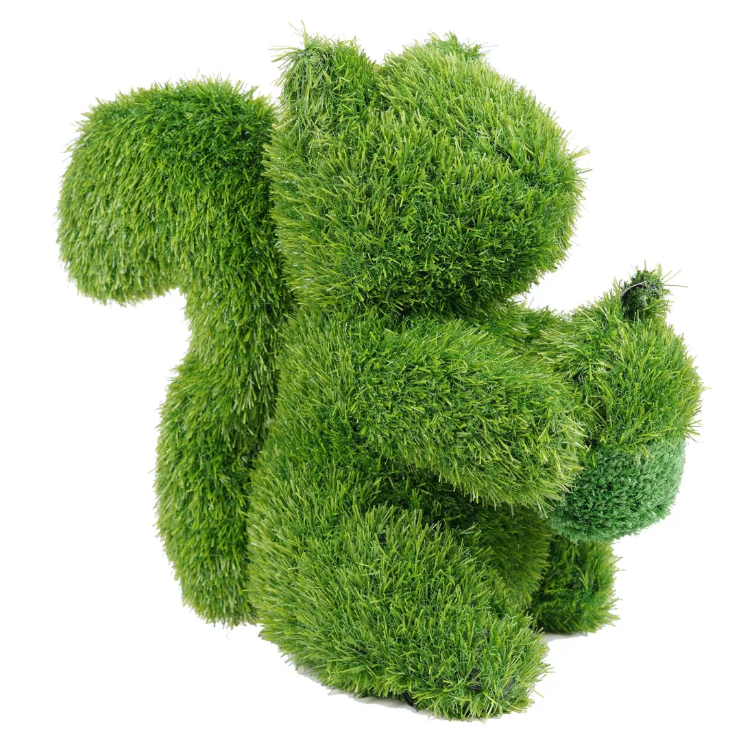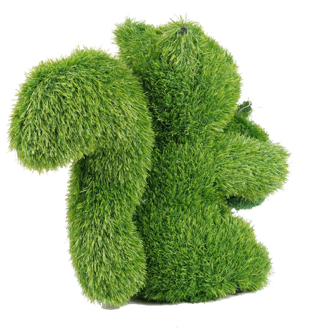Ce charmant écureuil est fabriqué avec de l'herbe synthétique traitée anti-UV. Le touché de cette sculpture végétale est doux. L'animal artificiel reste souple mais indéformable grâce à son rembourrage en ouate polyester. Aucune inquiétude, il ne craint donc pas la pluie. Pour éviter toute fuite les jours de vent, vous pouvez l'ancrer au sol avec ses anneaux et ses accroches métalliques. Lors des périodes froides, si votre région est soumise à fortes tombées de neiges ou de forts frimas, hivernez le à l'abri.