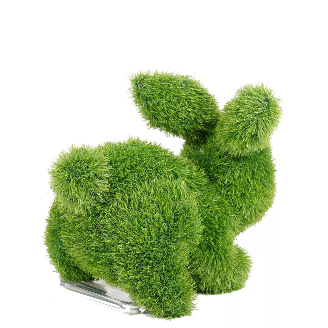 Des lapins sauvages qui gambadent dans la pelouse c'est mignon mais c'est aussi le risque d'avoir de jolis trous dispersés et des plantes bien taillées, si vous voyez l'image. Si ces animaux ne sont pas les bienvenus dans un jardin entretenu, nous vous proposons une alternative plus sereine, le lapin "en herbe" qui possède une adorable silhouette digne de l'art topiaire. Le bunny est un élément décoratif charmant qui joue la vedette à l'extérieur mais aussi à l'intérieur. Il attire les regards et donne le sourire. Placez le à la base d'un beau ficus artificiel par exemple. Il agrémentera le pot et l'arbuste.