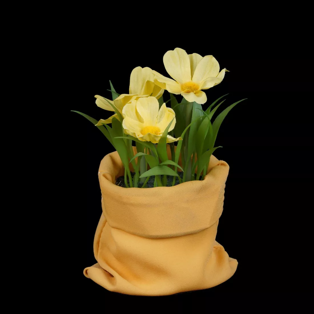 Ces jolies petites plantes en fleur représentent le printemps et les beaux jours qui arrivent. Six modèles sont disponibles : Tulipes orangées, Muscari blanc, Cosmos jaune, Narcisse blanc au cœur jaune, Renoncule et muguet. Chaque fleurette est plantée dans un support polystyrène caché dans un mini sac en tissu. Ce contenant est plus original qu'un pot classique et apporte de la luminosité aux compositions fleuries. Les habillages textiles sont déclinés en 3 coloris assortis aux teintes des fleurs. Le plus, les "emballages" en tissu sont réutilisables et durables dans le temps. Vous pouvez les laver à 30 degrés comme un textile délicat, sans les essorer. Si vous avez décidé de fleurir votre espace en fonction des saisons, lorsque la période est finie, rangez les dans une boite à l'abri de la poussière pour l'année suivante. Et pourquoi ne pas vous servir des sacs pour installer d'autres végétaux artificiels?