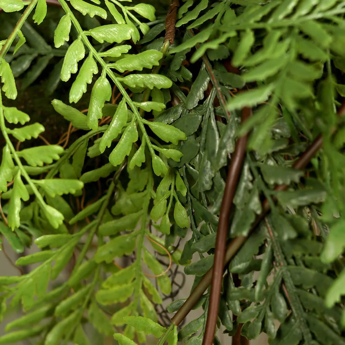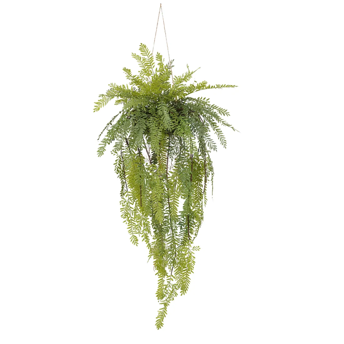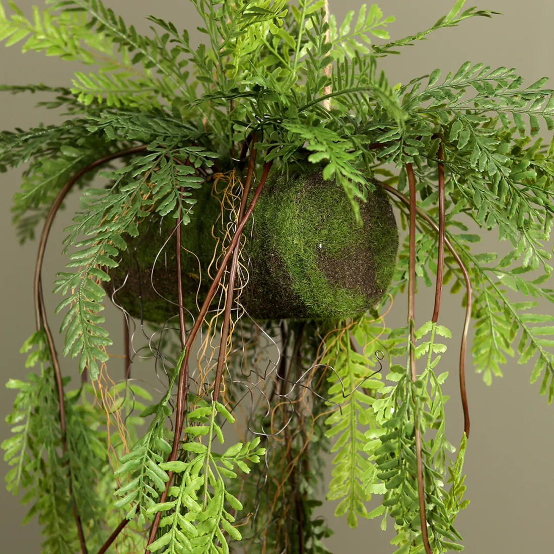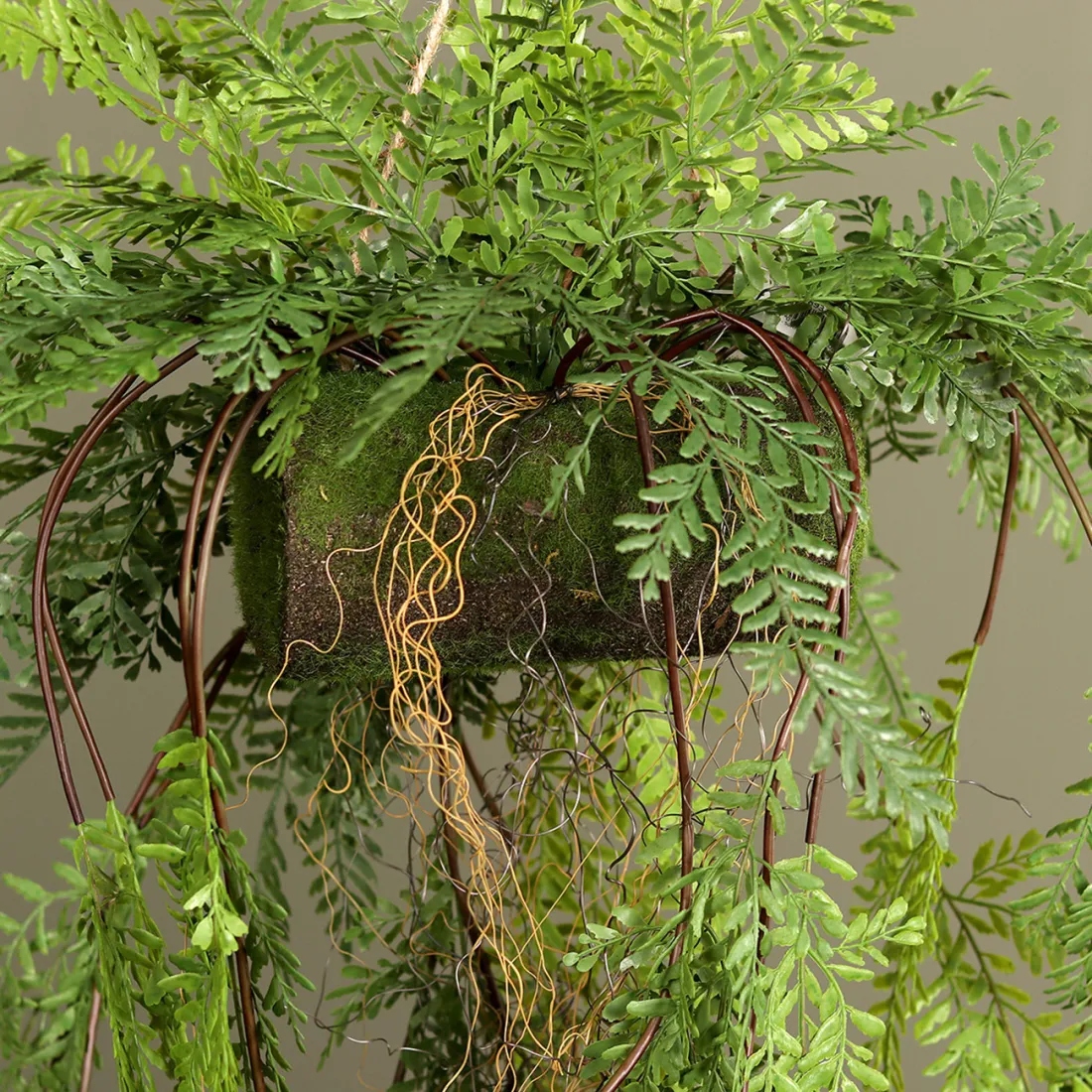 De beau volume, cette plante suspendue habille à ravir un coin de pièce inutilisé ou difficile à meubler. Plus besoin d'avoir la main verte ou d'entretenir le végétal. Posez un crochet au plafond ou sous une poutre, passez la corde dans l'anneau, mettez en forme la plante et le tour est joué. Votre intérieur est enrichi de chaleur et de style. Cette fougère tombante est parfaite pour les ambiances reposantes, les décors naturels mais aussi pour les décorations industrielles ou les atmosphères exotiques. Très chic dans un salon, c'est aussi une manière facile d'orner une salle de bain, une cuisine ou un bureau.
