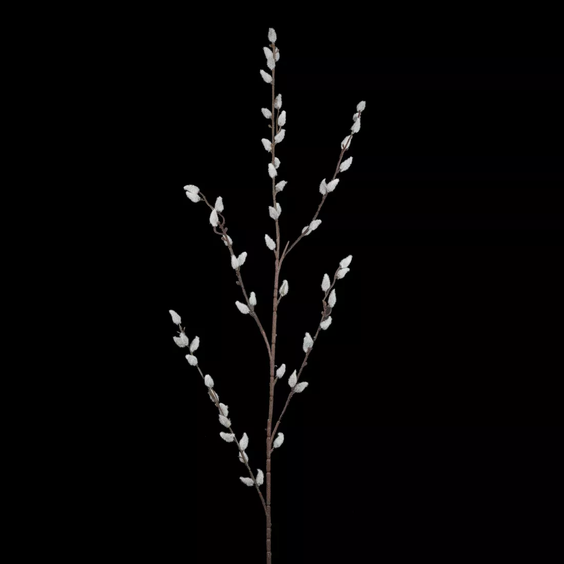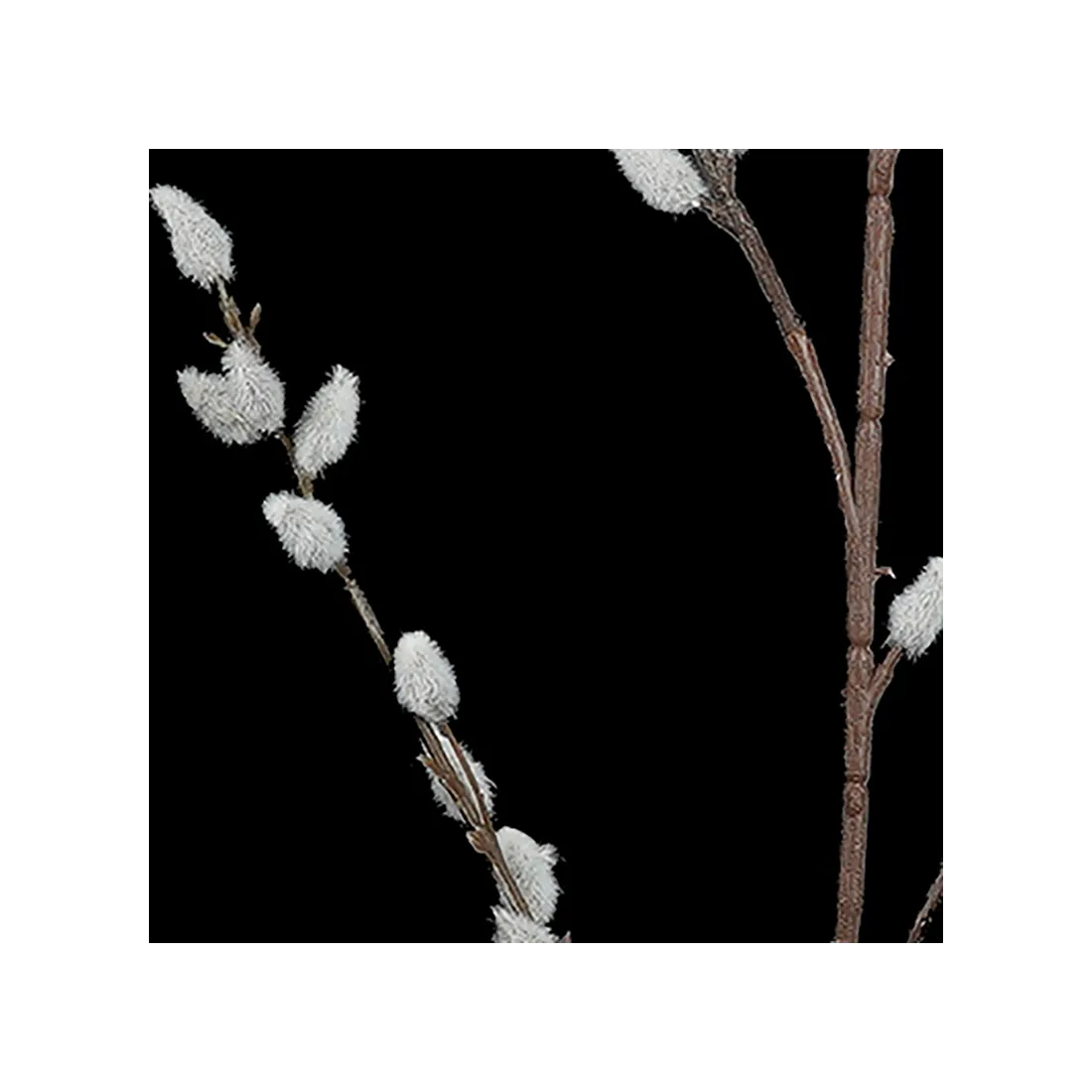 Le printemps s'annoncent et les rameaux nus de l'hiver se parent de bourgeons duveteux. Cette fausse branche imite cette apparition des pousses printanières prêtes à éclater. Elle ressemble aux faisceaux de saule. La ramification de bois est peu chère et d'aspect simple. Ce sont les parties bourgeonnantes blanchies et douces qui ont un véritable intérêt. La tige est destinée à être associée avec d'autres branchages ou fleurs artificiels. Souple elle peut également être utilisée pour faire des montages d'arrangements floraux. Pour imager le renouveau, créé un brin de printemps dans vos intérieurs.