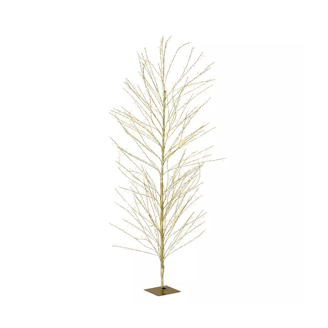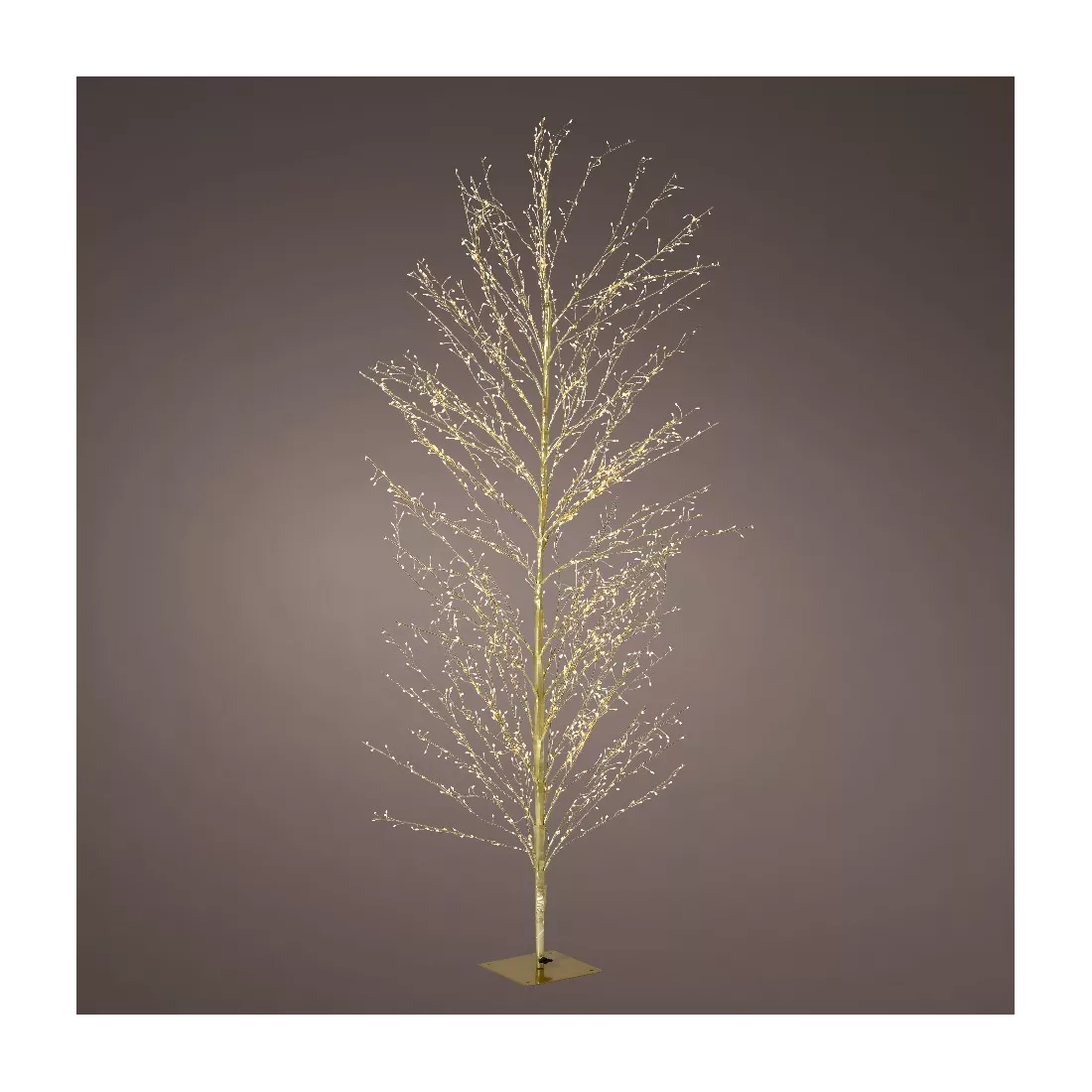 Sapin et cable couleur or - Longueur du cable 5 m - Micro leds jaune et blanches - Fonction fixe avec minuteur 8h