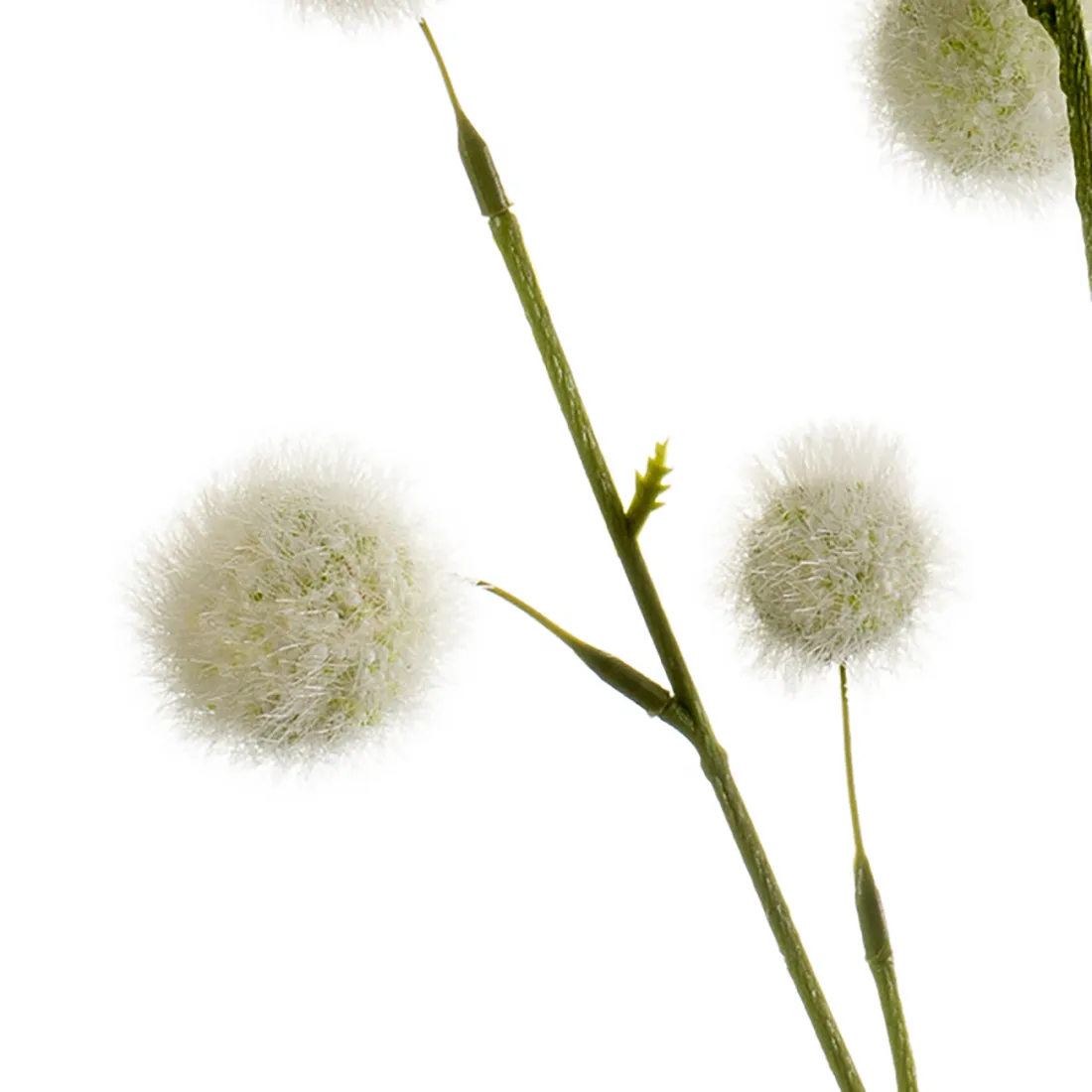 Cette branche de pompons artificiels s'élève à une hauteur de 80 cm pour une hampe florale de 46 cm. Conçue avec des pompons en nylon de qualité. Elle présente des pompons d'un diamètre variant entre 3 et 4 cm, offrant une texture douce et agréable au toucher. Grâce à sa tige renforcée, vous pouvez facilement modeler et ajuster la disposition des pompons selon vos préférences.