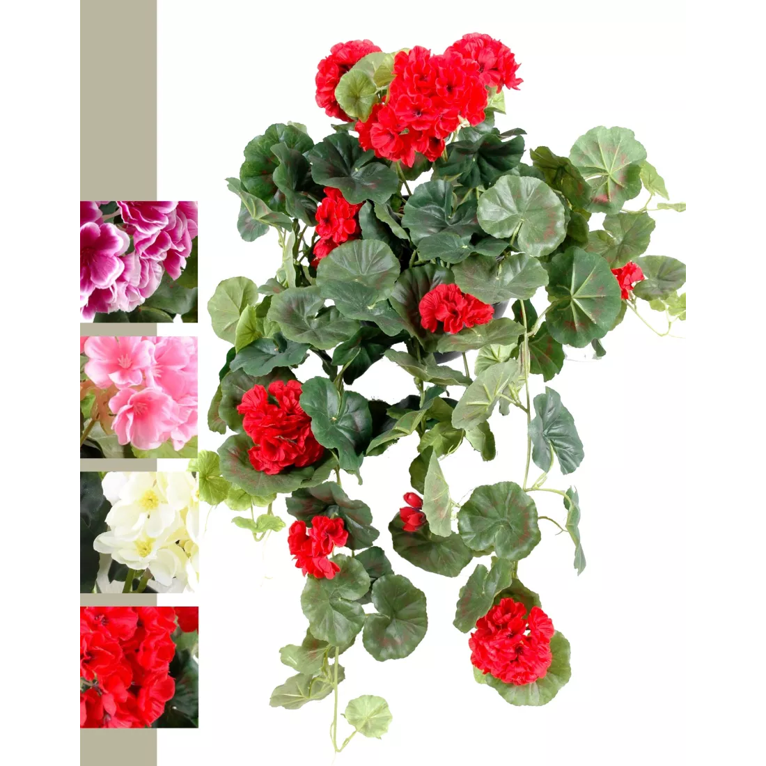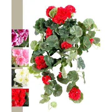 Dans des suspensions, jardinières ou des potées, en coloris unique ou en mélange, ces géraniums artificiels sont les rois des balcons et terrasses pendant les saisons printemps été. En association, vous pouvez les marier avec les géraniums plus touffu de la même collection (3424 et 3425) ou d'autres plantes fleuries artificielles. Ou optez plutôt pour des plantes au feuillage décoratif et au port retombant tels que des sprengeri afin d’obtenir une véritable cascade verdoyante et fleurie. Dans tous les cas, ce végétal chute synthétique fleuri de géranium ne laissera personne indifférent !