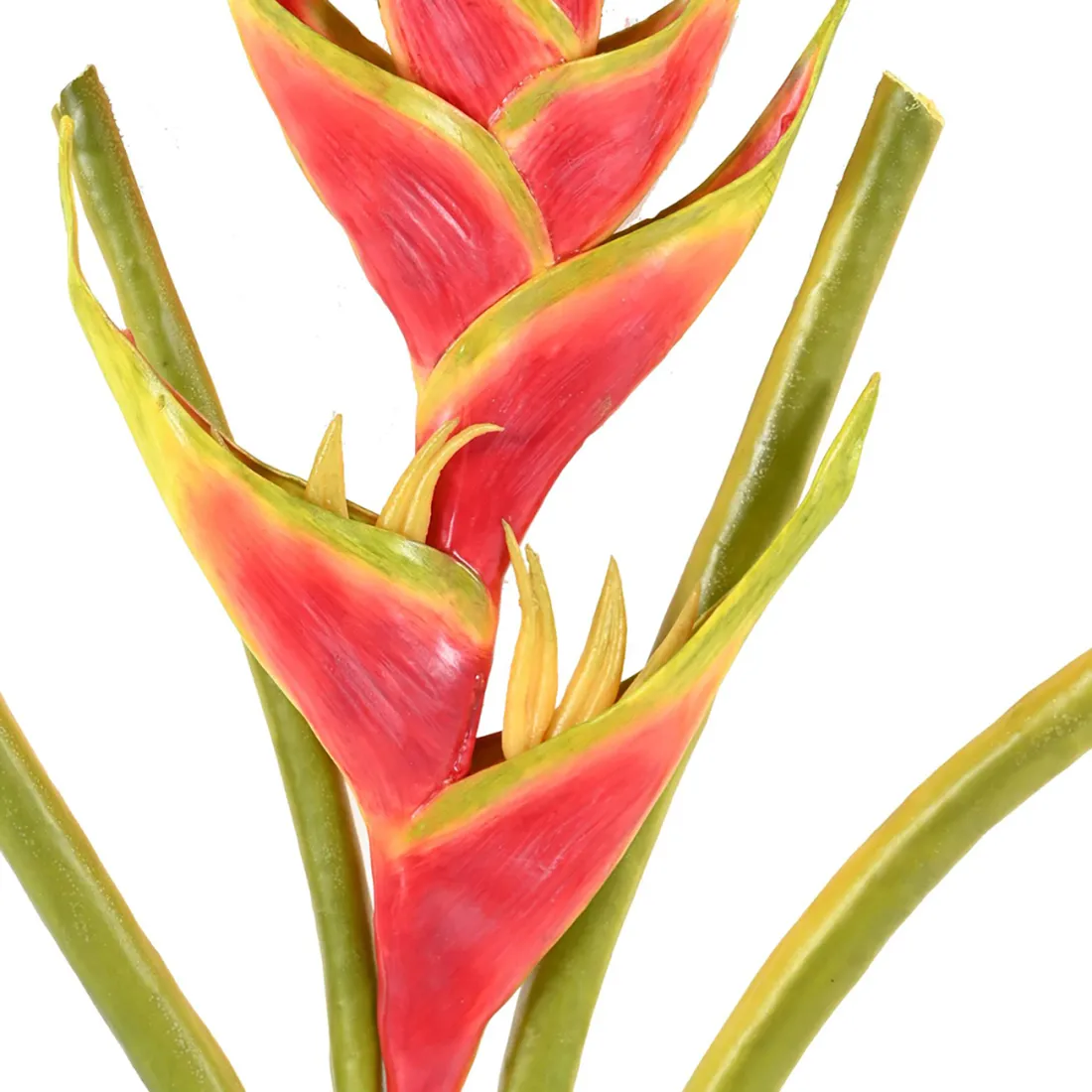 Voici une fausse fleur qui en impose; tout d'abord grâce à son volume mais aussi en raison de sa beauté. Fleur colorée tropicale par excellence l'Héliconia est une plante du même nom que l'on trouve dans les pays chauds et humides. Nous vous proposons un arbuste Héliconia artificiel également très bien imité.