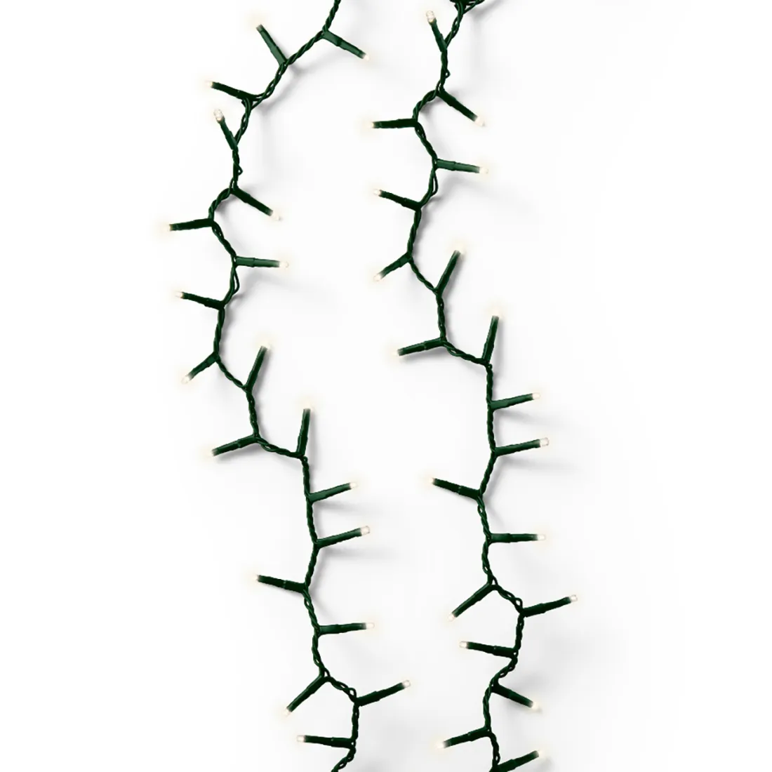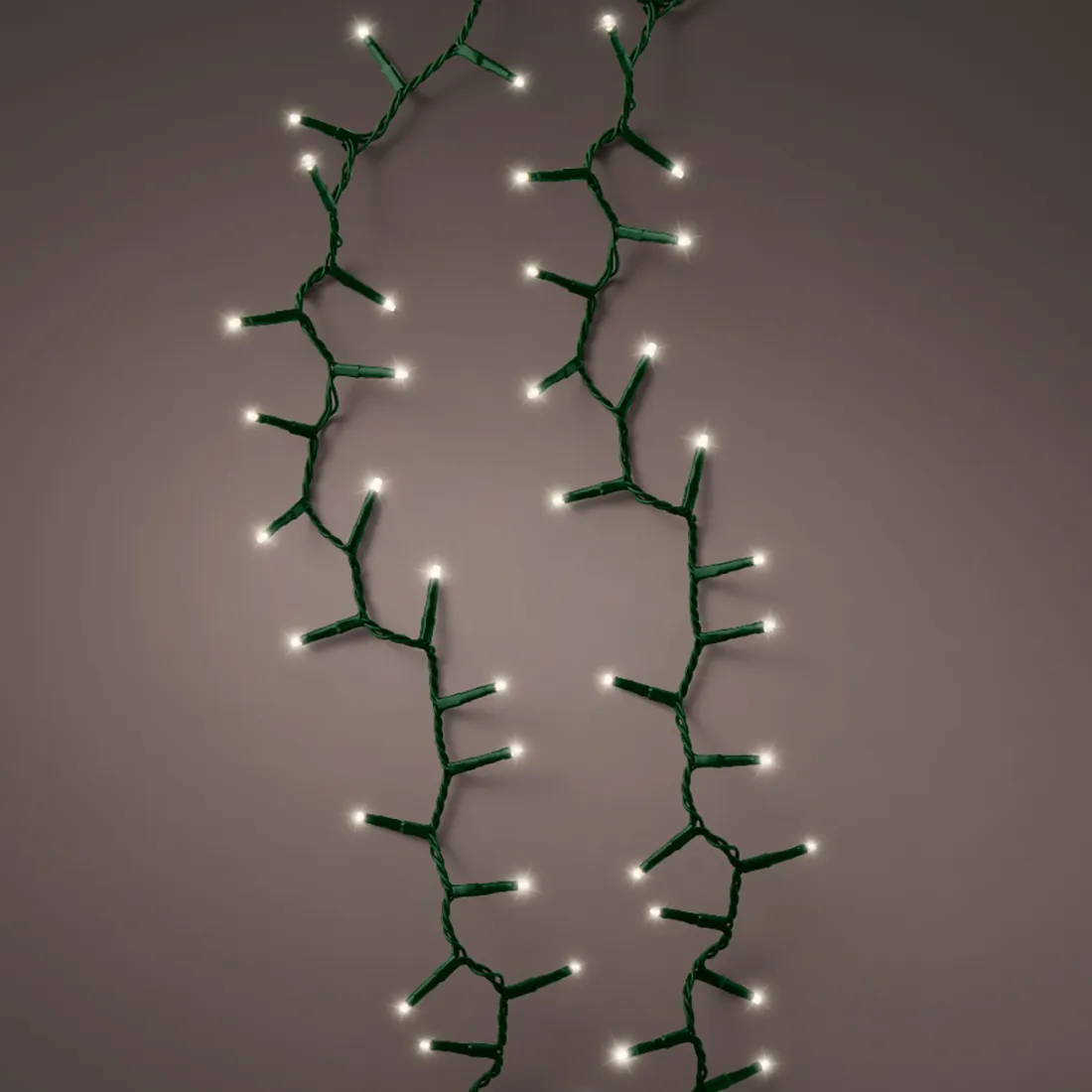Guirlande lumineuse de 180 cm composée de 12 sections filaires, 408 ampoules leds IP 44 couleur blanc chaud. 8 possibilités de fonctions effet clignotant flash.
