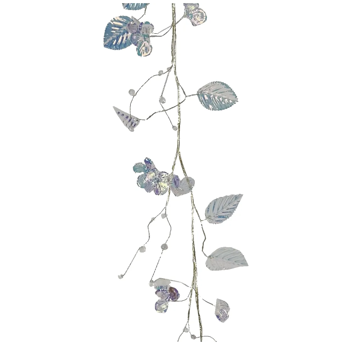 Guirlande de perles, de feuilles et de fleurs irisées de longueur 130 cm largeur 8 cm