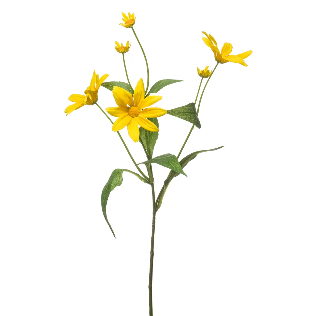 Cette marguerite artificielle est une belle copie de fleur des champs. Bien réussie, elle est composée de fleurons jaunes ou blancs de jolie taille. Cela vous permet de l'utiliser seule en associant plusieurs tiges mais vous pouvez aussi l'intégrer à l'intérieur d'un bouquet artificiel avec d'autres fleurs bucoliques telles que coquelicots, narcisses, bleuets, ou d'un esprit séché comme le blé, le chardon, la monnaie du pape. Les fleurs d'ambiance sauvage sont de retour dans la décoration intérieure. D'aspect traditionnel, ce sont aussi des fausses fleurs qui donnent tout leur potentiel tendance dans un décor moderne de mariage ou de maison.