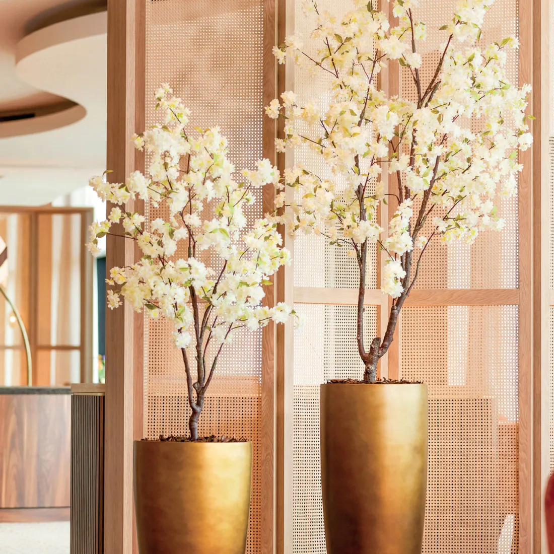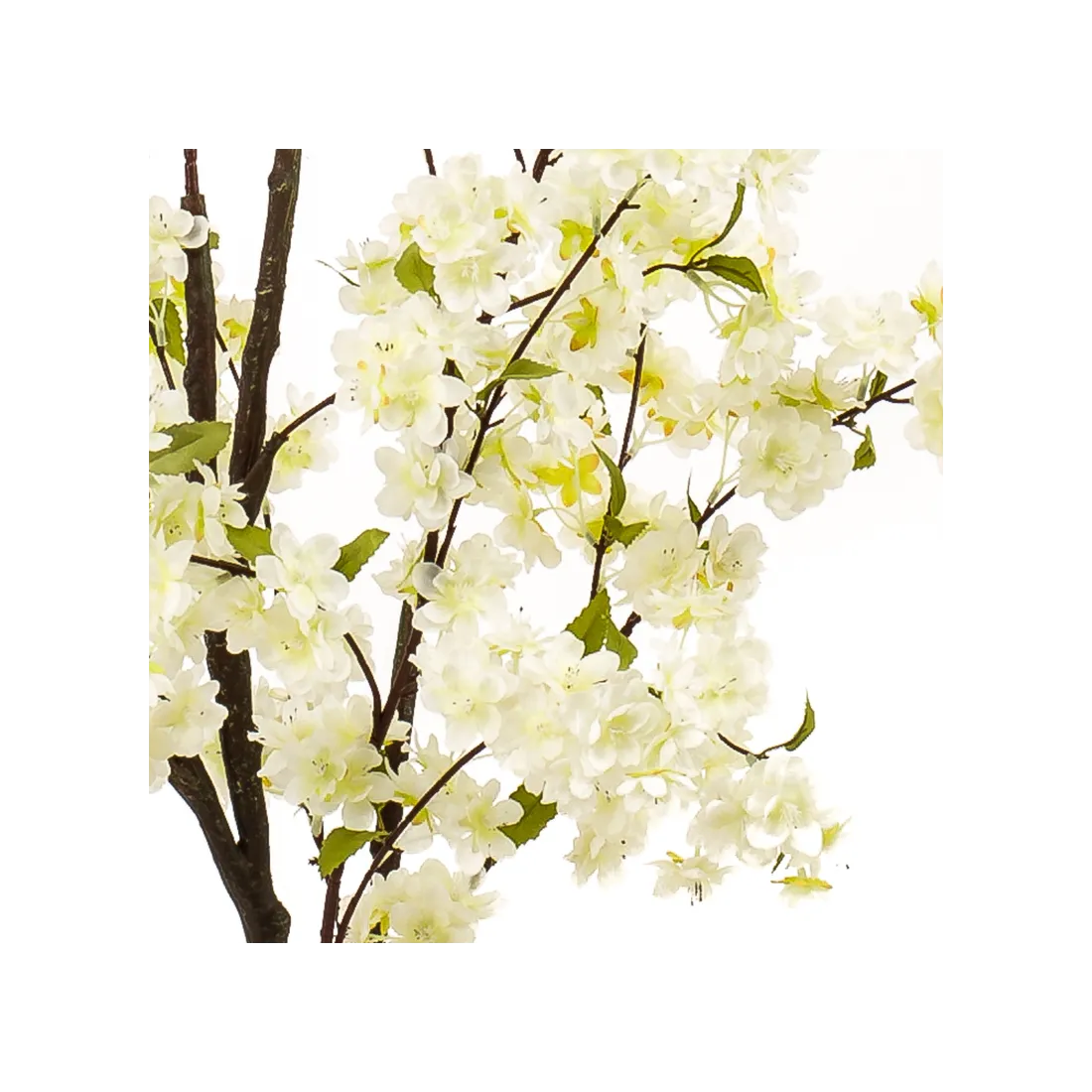 Ce petit cerisier artificiel est formé d'une multitude de fleurons aux nombreux pétales. Cela lui donne l'apparence d'une boule de fleurs comme le célèbre cerisier japonais qui se donne en spectacle tous les printemps. L'arbuste artificiel est très décoratif, c'est son principal atout. De taille plutôt petite pour ce style d'arbre, vous pourrez l'intégrer facilement dans un hall, un salon ou une vitrine de magasin.