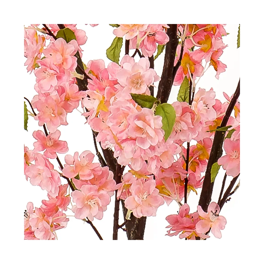 Ce petit cerisier artificiel est formé d'une multitude de fleurons aux nombreux pétales. Cela lui donne l'apparence d'une boule de fleurs comme le célèbre cerisier japonais qui se donne en spectacle tous les printemps. L'arbuste artificiel est très décoratif, c'est son principal atout. De taille plutôt petite pour ce style d'arbre, vous pourrez l'intégrer facilement dans un hall, un salon ou une vitrine de magasin.