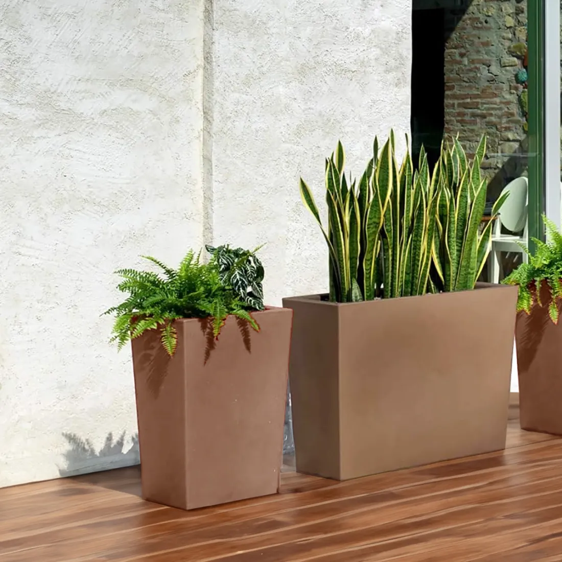 Pot pour extérieur ou pour intérieur. Jardinière haut de gamme, résistante aux chocs. Réalisée en ultra résines (PE) non toxiques et recyclables.