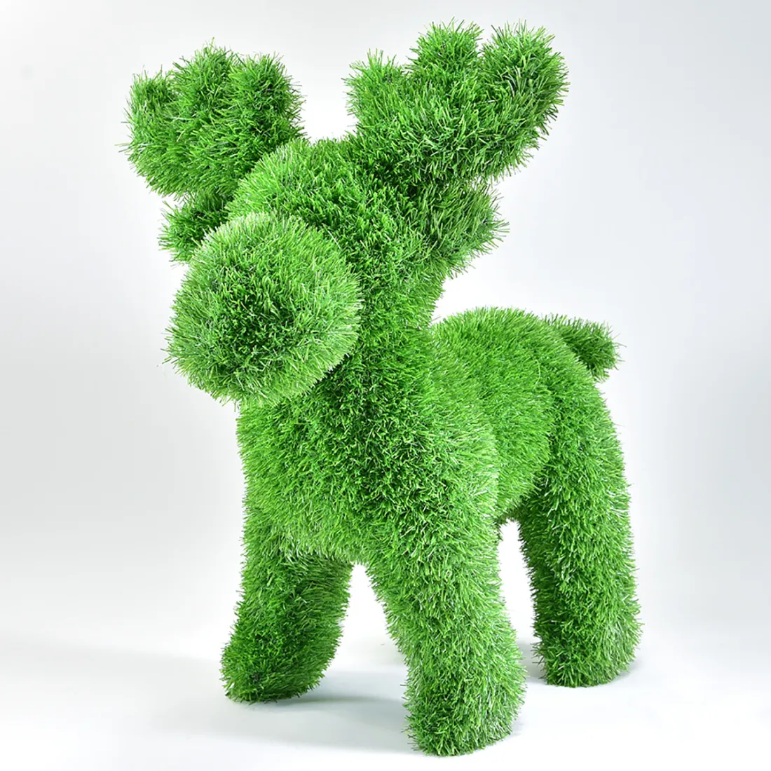Douce au touché, cette peluche en herbe est remplie de ouate en polyester. Elle est souple tout en étant indéformable. La pelouse synthétique est prévue pour les expositions au soleil, elle ne se décolore pas. La pluie ne l'abime pas. Si votre région est soumise à de nombreux gels évitez le toucher le compagnon. Le renne est un grand voyageur, mieux vaut prévenir les jours de vent; attachez le dehors grâce à ses anneaux et les crochets prévus à cet effet.