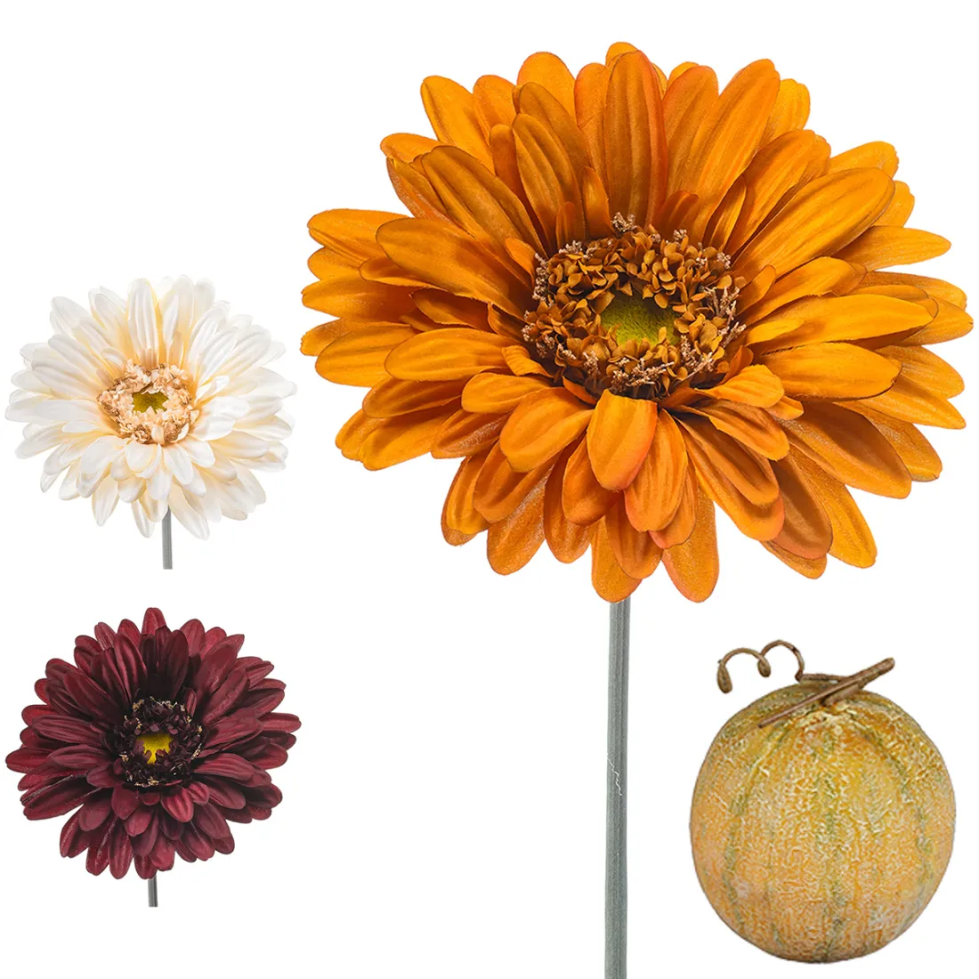 Le gerbera est une fleur intemporelle qui ressemble à la marguerite. Si les deux espèces appartiennent à la même famille, le Gerbera renvoie une connotation moins champêtre. Nous vous présentons ici une taille de fleur artificielle hors norme, que ce soit au niveau du diamètre de la corolle ou la hauteur de sa tige. Résolument décoratif, ce gerbera est proposé en 3 couleurs tendance qui s'associent de manière esthétique. A l'unité ou assemblée en bouquet, glissez la fleur artificielle géante dans un vase lourd pour éviter le basculement. Dans un esprit équivalent, vous trouverez une rose et une pivoine de grand gabarit.