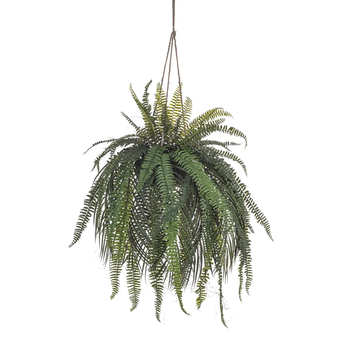 Cette composition végétale n’a pas besoin de pot, la fougère est fixée sur une boule moussue imitant la terre, dans un style kokedama résolument contemporain. En optant pour une plante suspendue synthétique, vous ne faites aucun faux pas : c’est la tendance qui apporte une touche chaleureuse et naturelle à votre intérieur, sans effort. Vous cherchez à enrichir encore plus l’espace ? N’hésitez pas à associer plusieurs suspensions végétales artificielles de différentes tailles, en les plaçant à diverses hauteurs pour un effet encore plus harmonieux.