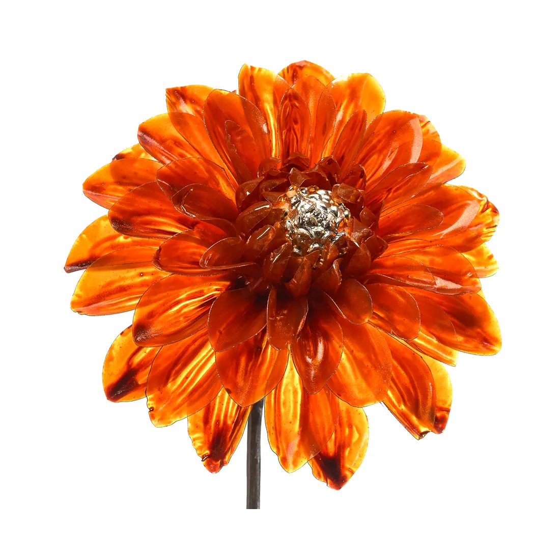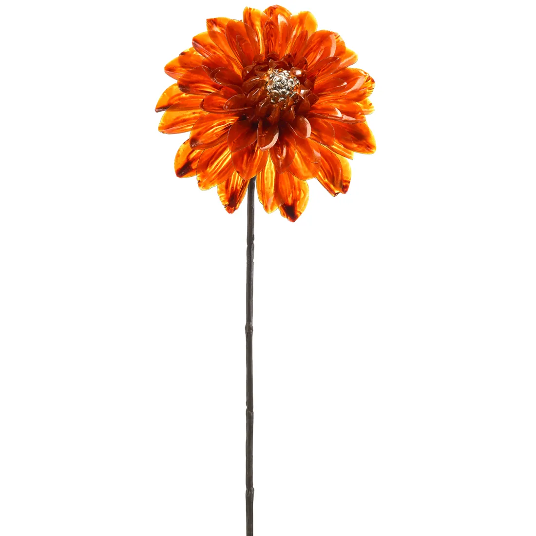 Cette création florale artificielle s’inspire librement de la silhouette gracieuse du dahlia, sans chercher à reproduire fidèlement la fleur véritable. Au contraire, elle revendique son caractère artificiel, et c’est précisément ce qui la rend si unique et fascinante. Ce Dahlia artificiel est avant tout un objet de décoration moderne. Vous ne trouverez nulle part une version similaire. Après 25 ans de collaboration avec des designers talentueux, cette fleur en plastique moulé continue de nous étonner par sa singularité. La couleur éclatante et pleines d’énergie, combinée à des pétales partiellement translucides, offrent un visuel à la fois audacieux et raffiné. Pour la sublimer, glissez simplement la fleur dans un vase. Votre composition florale sera incomparable, apportant une touche de personnalité à un comptoir d’accueil, une salle d'attente ou à un bureau un peu terne. Si vous souhaitez l'associer à d'autres éléments, optez pour des végétaux originaux, plutôt que pour les classiques feuillages artificiels verts, afin de créer une harmonie qui sort de l’ordinaire.