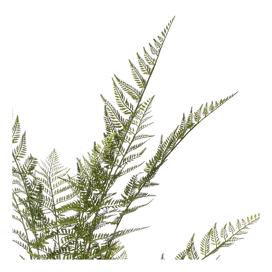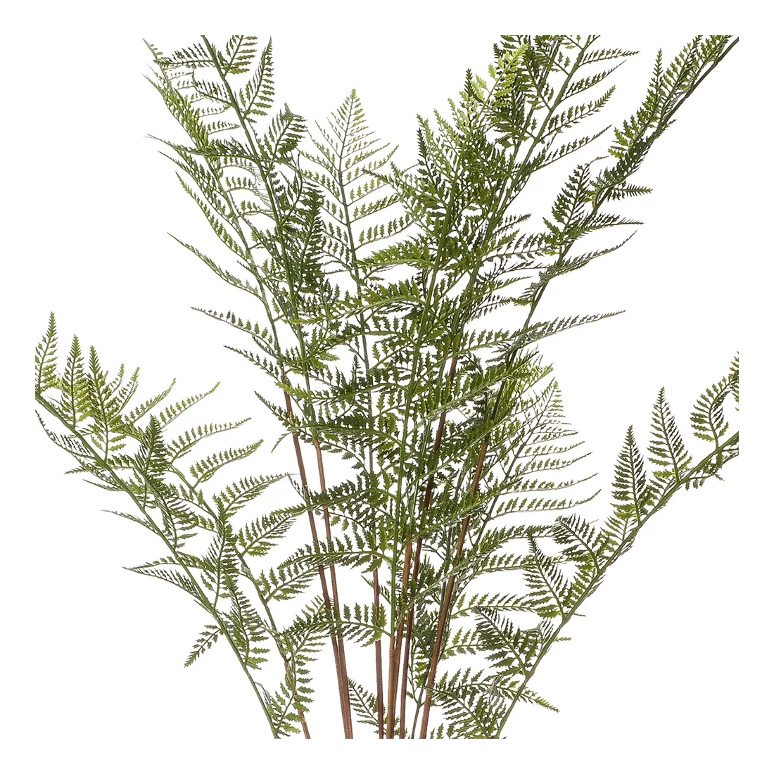 Les fougères se retrouvent tout autour du globe, dans des milieux plutôt sombres et humides. Les espèces sont nombreuses et leurs aspects différents. Ici nous avons un spécimen artificiel qui imite une sorte de fougère arbustive sans tronc. Les frondes sont longues et bien dessinées. Les tiges sont de coloris marron. Vous pourrez ajouter le végétal factice dans des compositions de fausses plantes vertes avec des arbustes tropicaux du type cycas, alocasia, monstera et d'autres. Dans un pot, associez plusieurs branches pour obtenir une fougère artificielle foisonnante. Dans les grands murs végétaux, elle donne du volume tout en gardant un coté aérien. très jolie plante.