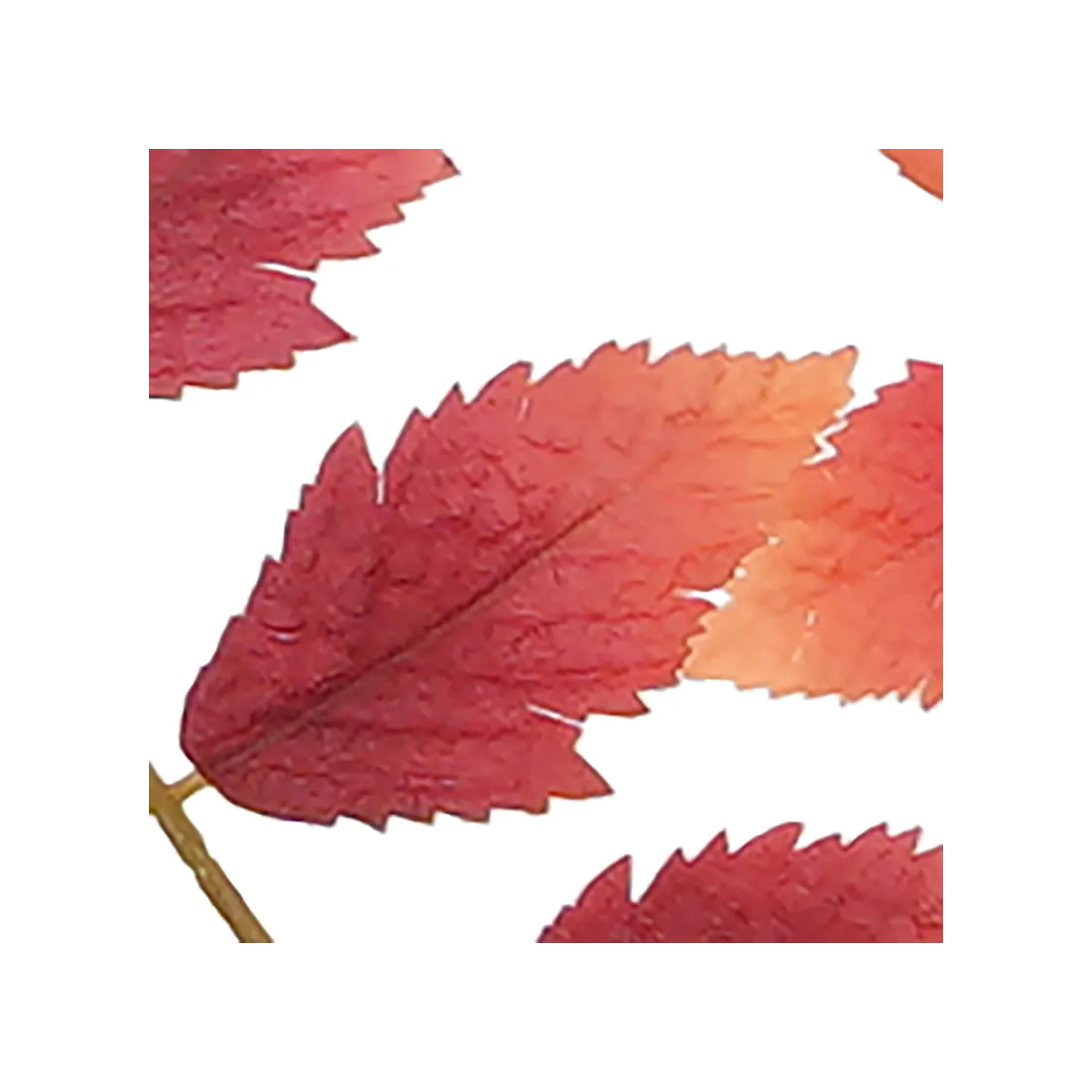 Feuilles tissu : longueur de 6 à 8 cm - largeur de 3 à 5 cm - dégradé du orange au rouge bordeauxTige plastique marron/vert
