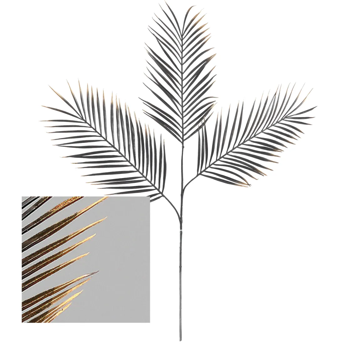 Tige de 3 feuilles de palmier artificiel type Areca - Feuilles noires aux pointes dorées.