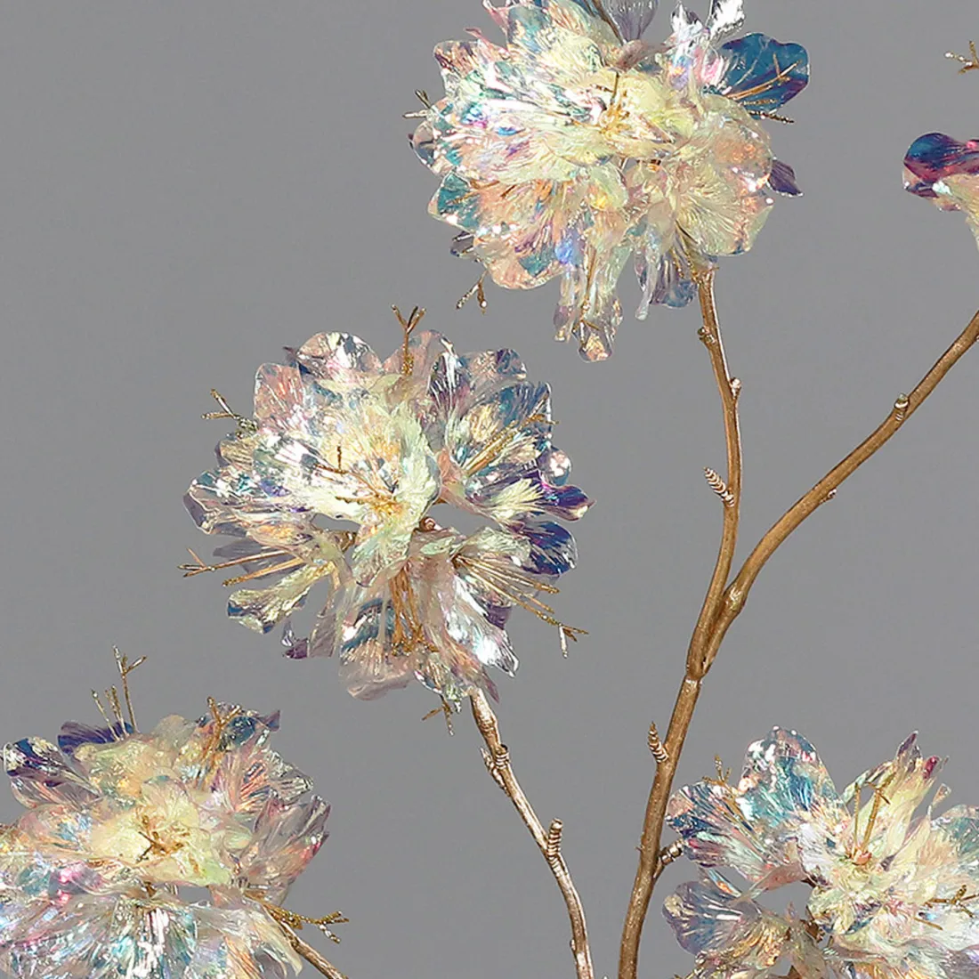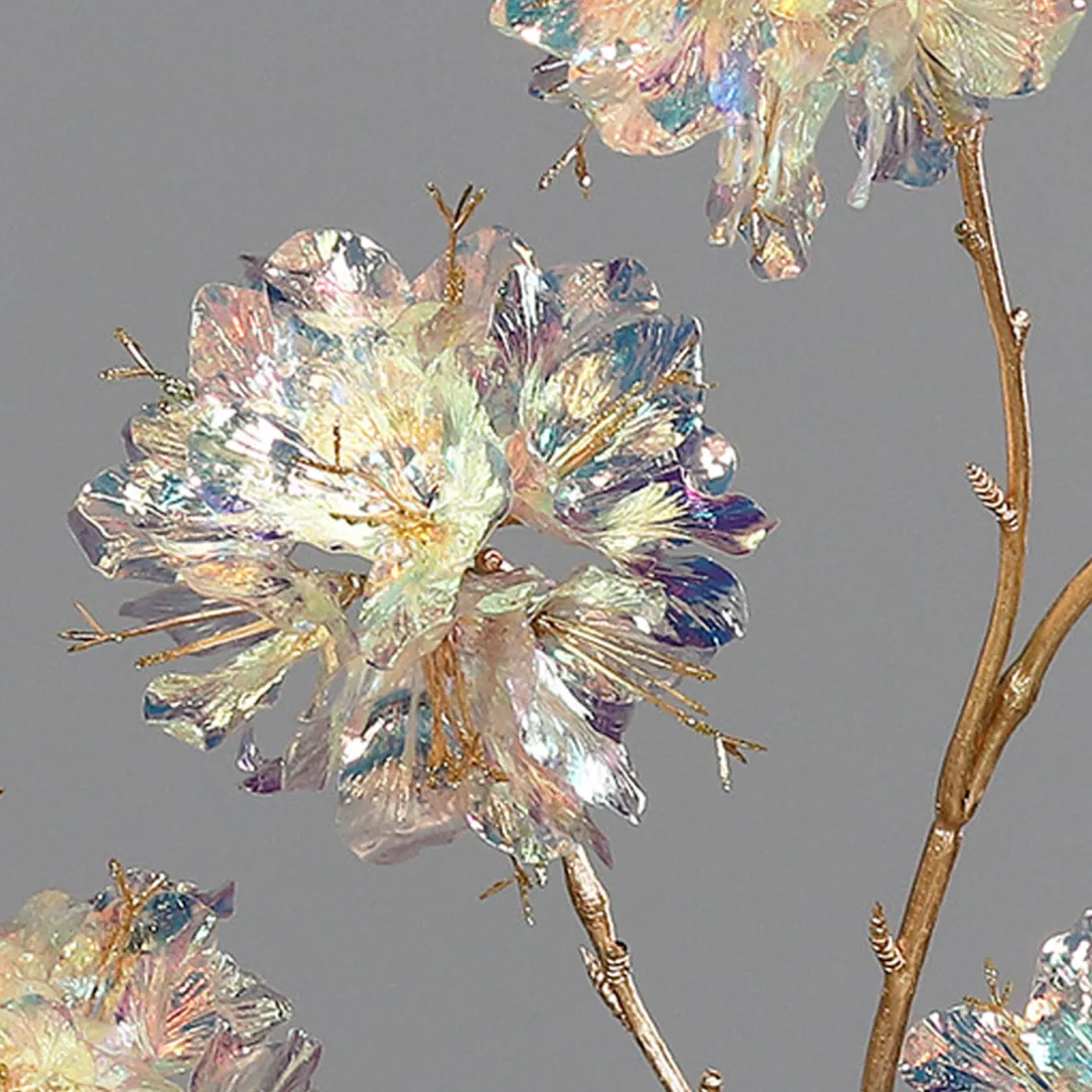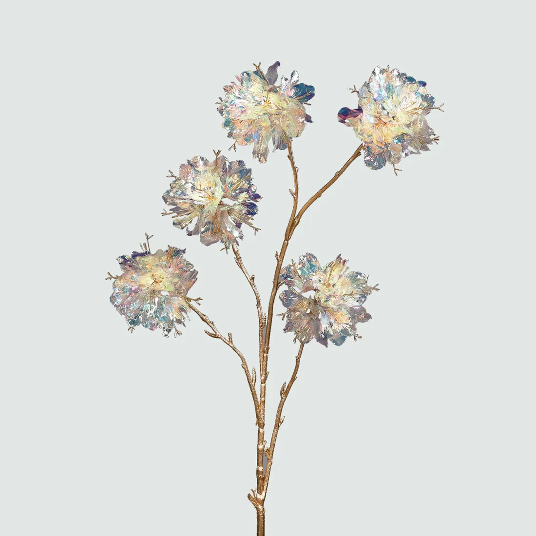 Cette création florale artificielle est un véritable coup de cœur, avec sa capacité à changer de couleur selon la lumière et l'angle de vue. Ses pétales dévoilent des nuances allant du blanc nacré au rose parme léger. La tige, dorée comme les étamines, ajoute une touche stylée. Idéale pour composer des bouquets enchanteurs, que ce soit pour Noël ou d'autres occasions évènementielles. Cette fleur irisée s'intègre parfaitement dans la décoration tout au long de l'année, apportant énergie et sophistication à votre intérieur. Son originalité et son raffinement en font un choix inégalé. Parcourez notre site pour découvrir des tiges florales assorties et créer des compositions harmonieuses. Pour un effet contrasté, choisissez des feuillages noirs, ou restez dans les tons parme et mauve pour une déco harmonieuse.