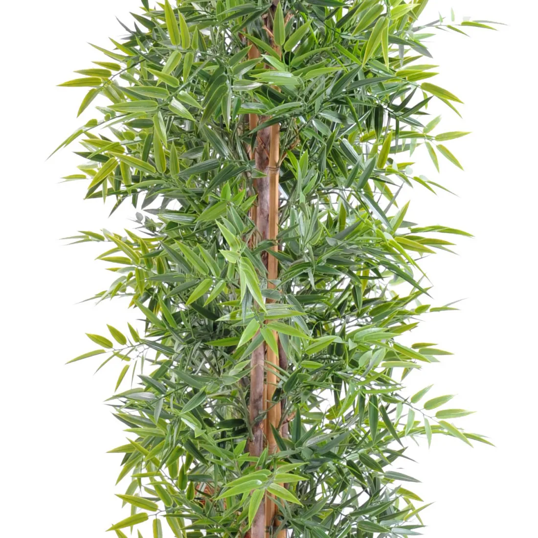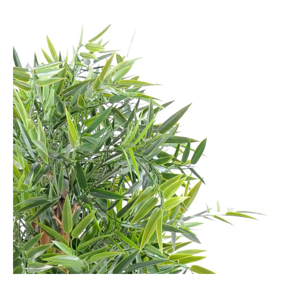 Ce bambou artificiel petites feuilles est ignifugé. Il est composé d'un tronc en cannes de bambou naturelles (7 cannes) et d'un feuillage vert en plastique. Hauteur proposée, 120 cm. Livré dans un conteneur plastique. Feuillage dense.