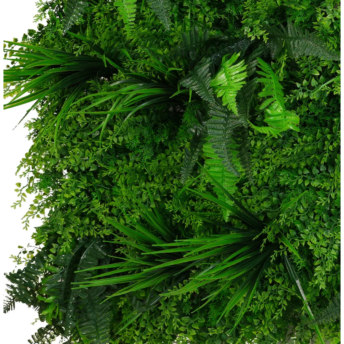 Cette plaque mur végétal artificiel a été confectionnée avec le plus grand soin pour vous proposer un article de belle qualité. L'association dense, de 2 styles de fougères, permet de recouvrir une surface de manière simple et décorative. Le mur végétalisé est aisé d'utilisation tout en étant facile à installer. Il est possible d'ajouter d'autres fausses plantes vertes pour personnaliser votre décor. Le traitement retardant de feu, favorise l'emménagement des lieux recevant du public, normes ERP. En intérieur comme en extérieur, les espaces d'implantations sont multiples: grillage, mur, vitrine, et autres.