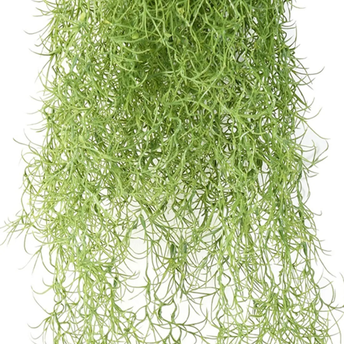La Tillandsia de la même famille que l'ananas, aussi appelée mousse espagnole, fille de l'air ou barbe de vieillard. C'est une plante épiphyte originaire d’Amérique Latine où on la retrouve généralement pendue aux branches d’arbres ou tous types de supports aériens. Cette plante synthétique ne nécessite aucun entretien (ni taille ni élagage), un simple nettoyage à l’eau savonneuse suffit amplement pour lui rendre son éclat naturel.