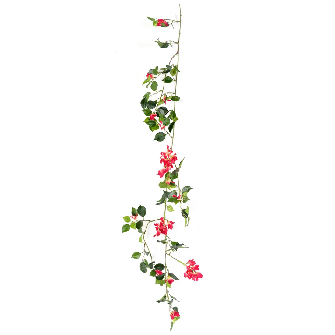 Cette branche artificielle de bougainvillier présentée sous la forme d’une guirlande de 110 cm de longueur est ignifugée et traitée à la conception. Les parties de la liane imitent des brindilles de bois vert marron. Le feuillage synthétique met en avant des fleurons de couleur rose fuchsia semblables aux véritables fleurs de bougainvillier. Conçue pour reproduire la beauté naturelle du bougainvillier, la guirlande est parfaite pour ajouter une touche méridionale élégante aux créations végétales, sans les tracas de l'entretien.