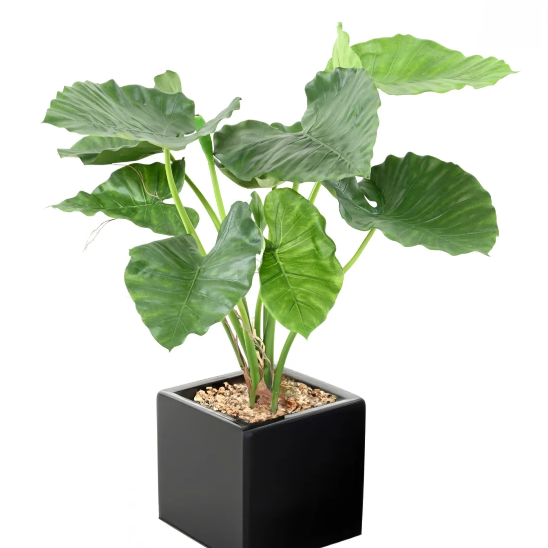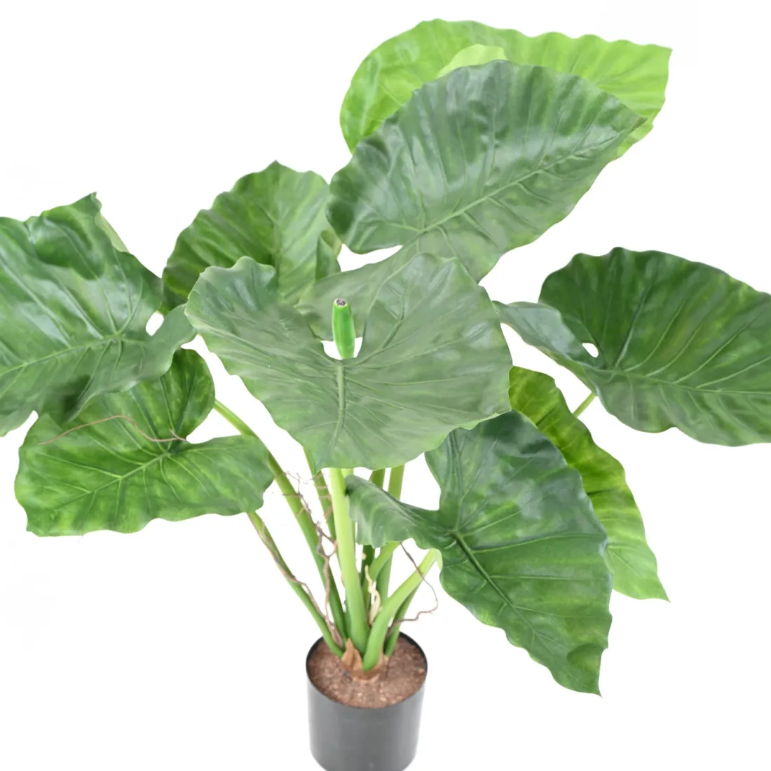 Ce bambou artificiel grandes feuilles est ignifugé et composé de 6 cannes de bambou naturel. Le feuillage synthétique est vert en matière tergal. Les feuilles font 15 cm de longueur par 2.5 cm de largeur pour les plus grandes. 3 dimensions sont proposées pour l'arbre artificiel; de 120 à 180 cm de hauteur. Livré dans un support plastique destiné à être inséré dans un autre contenant plus décoratif (plantes artificielles). Le feuillage est dense.