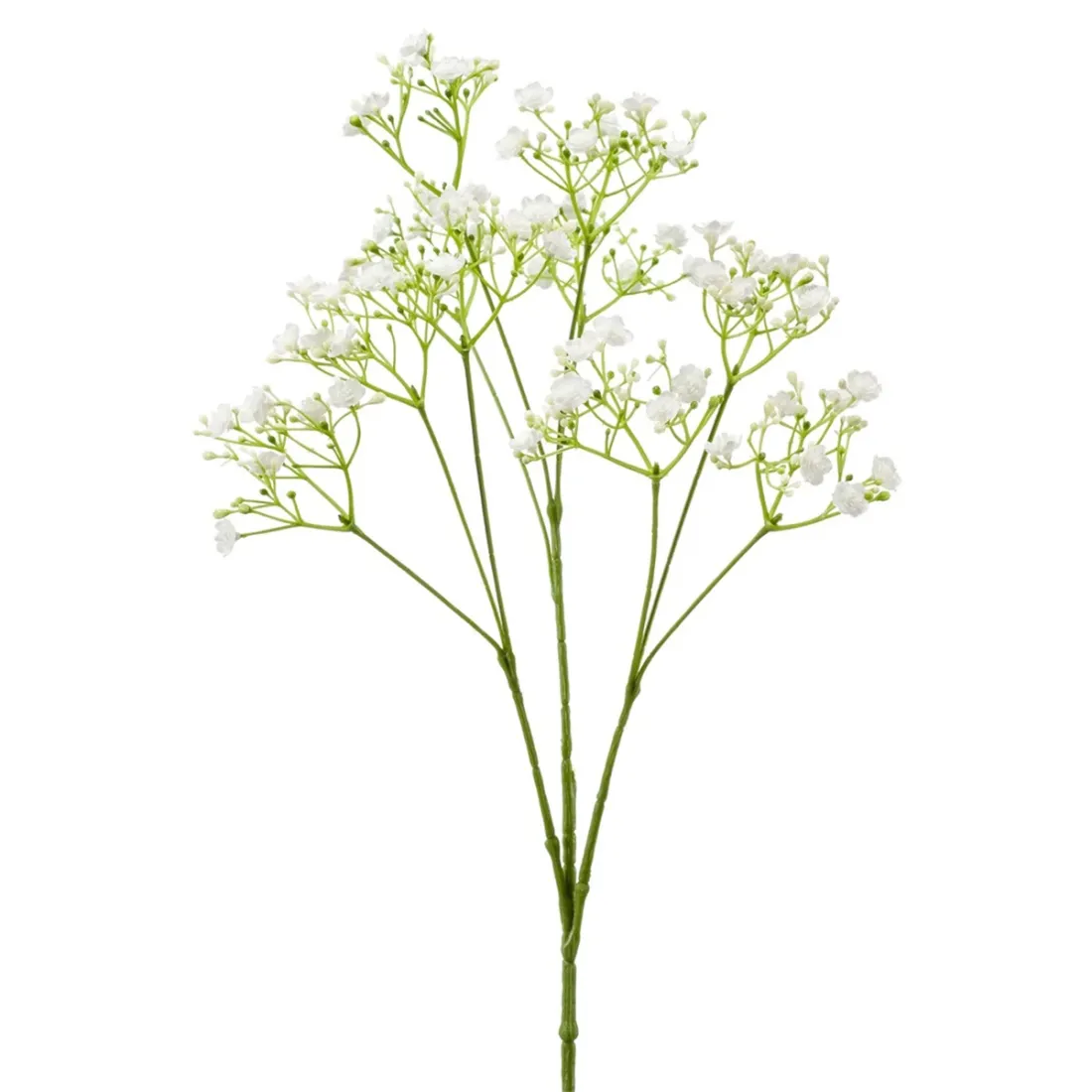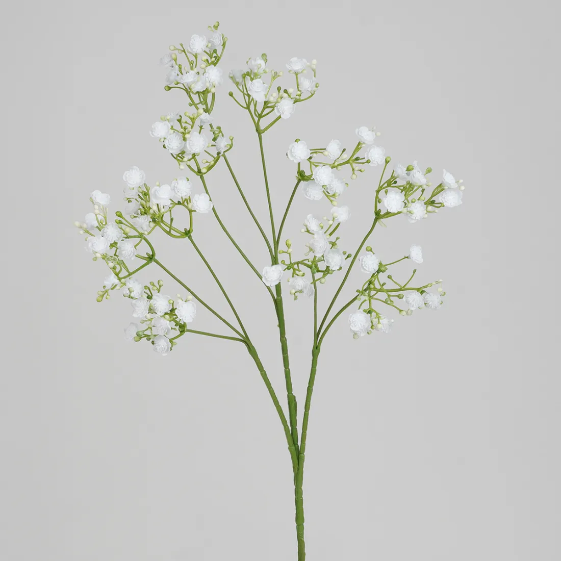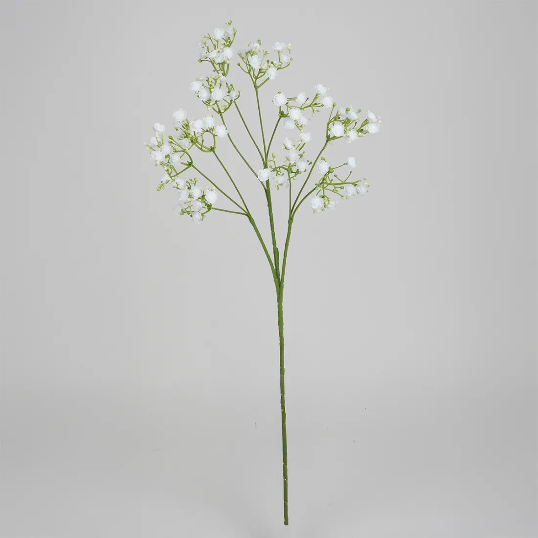 Le Gypsophile en pleine floraison est une fleur subtile formée d'une multitude de branches ornées de mini fleurons. L'ensemble fait penser à une jolie ombrelle légère et vaporeuse. C'est donc tout naturel que le Gypsophile factice arbore des fleurettes pompon assemblées en forme de petit nuage blanc. C'est redevenu une fleur très tendance dans la décoration intérieure. Il est aussi beaucoup utilisé pour les cérémonies et évènements festifs comme les fêtes de fin d'année. L'atout supplémentaire du Gypso synthétique, il n'est pas toxique contrairement au vrai.