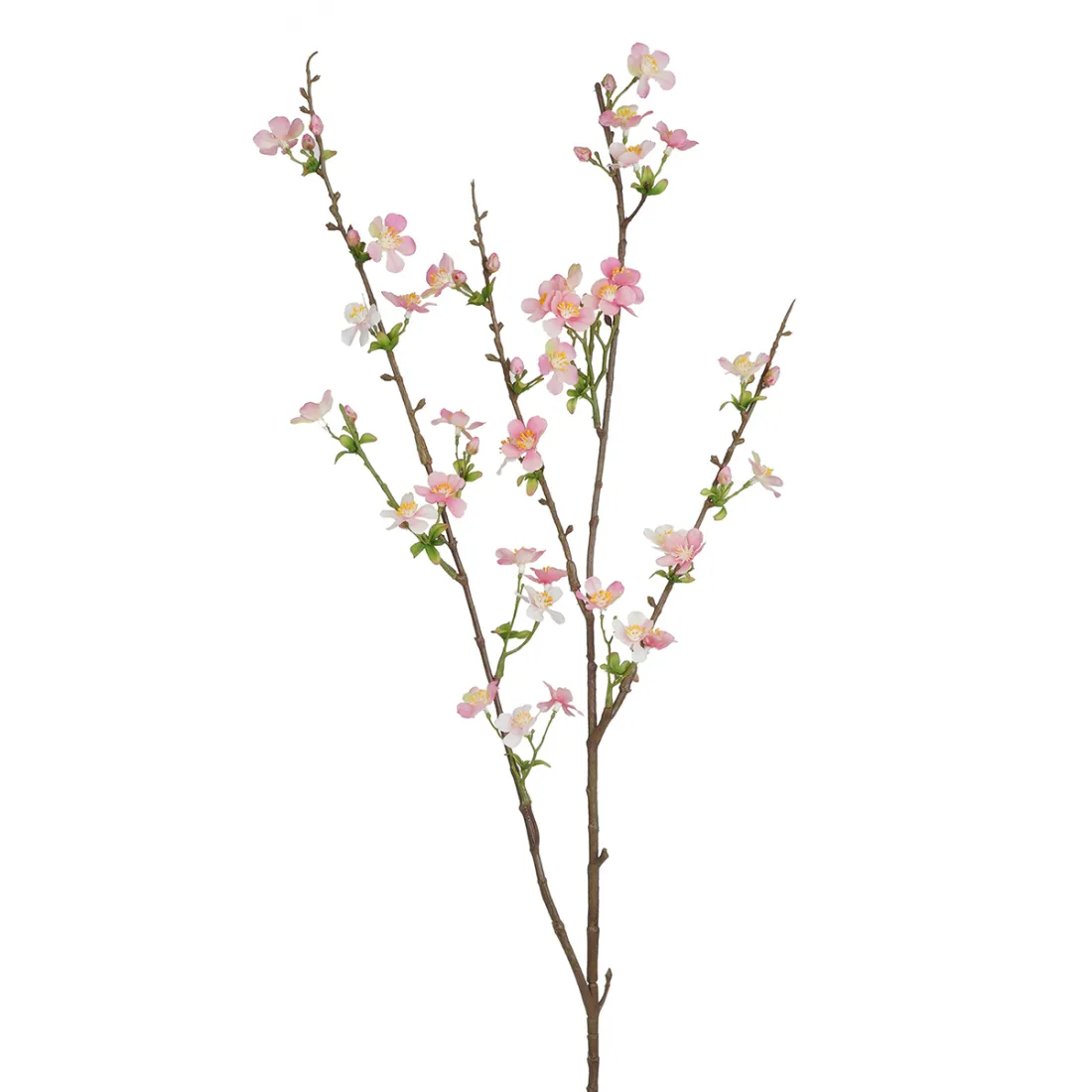 Cette fausse branche de fleurs de pommier possède un aspect très gracieux. Telles de petites étoiles aux bords arrondis, les fleurons sont de belle finition et réalistes. Ils ne sont pas tous identiques, ils sont nuancés du blanc crème au rose pastel et possède un cœur d'étamines jaunes. Vous pourrez admirer cette branche fleurie artificielle tout au long de l'année, glissée dans un vase ou accompagnée. La finesse de ce pommier en fait également une fleur idéale pour sublimer une décoration de mariage ou d'anniversaire. C'est aussi une imitation extrêmement délicate parfaite pour élaborer une composition dans un style ikebana ou créer un visuel épuré. La simplicité de cette branche de pommier fleuri lui donne à la fois une force dans la sobriété et une élégance naïve. Nos conseils pour l'associer avec d'autres végétaux artificiels. Pour élaborer bouquets et compositions florales avec ce joli pommier factice, évitez tout mélange avec des sujets au visuel trop imposant, restez dans la légèreté ou la finesse.