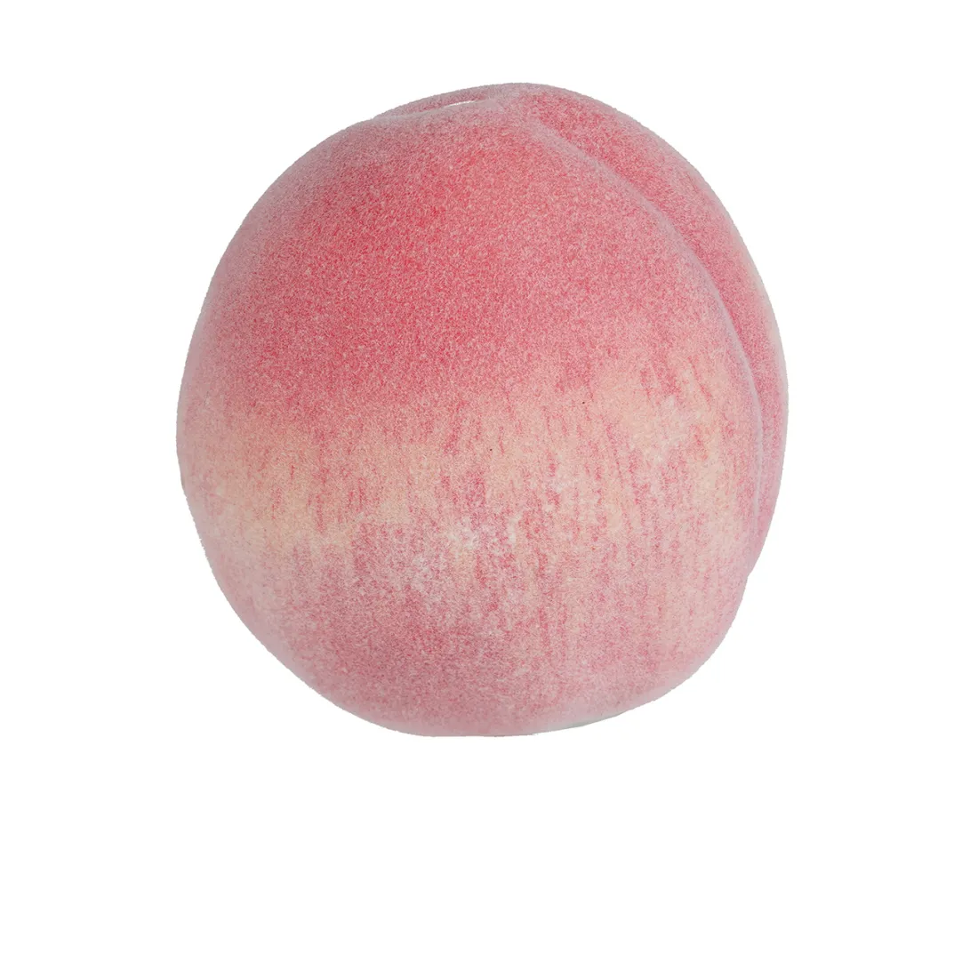 Cette pêche artificielle, réalisée en polyfoam (dérivé du PE) eet recouverte d’une fine matière duveteuse. Elle reproduit fidèlement l’apparence et la douceur du fruit naturel. Sa silhouette de forme de arrondie est marquée d’un sillon délicat et terminée par une base à peine pointue. Sa surface est majoritairement rose, quelques marbrures crème viennent compléter le coloris. L'ensemble des teintes et de la texture lui confère un aspect frais et appétissant. Elle est stable lorsqu’elle est posée à plat sur le côté. Cette fausse pêche peut être utilisée seule ou intégrée à une multitude d’associations décoratives.