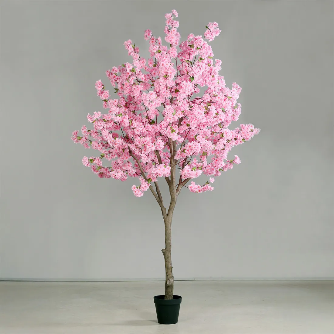 L'emblématique cerisier japonais connu sous le nom de Sakura se couvre de fleurs au printemps. Les fleurons peuvent être de coloris blanc, rose pâle ou rose vif. Ici nous avons une imitation d'arbre artificiel fleuri aux tonalités dégradées du rose clair au rose soutenu. Au sein d’une même grappe de fleurs, les pétales présentent des nuances différentes, ce qui accentue l’effet esthétique. Comme la version naturelle, les feuilles sont peu présentent et uniquement parsemées de ci de là. Au pays du soleil levant, le Sakura est historiquement associé aux samouraïs et leur acceptation d'une vie courte; plus largement il représente le concept d'impermanence et de brièveté de la beauté. Chez nous, la floraison symbolise plutôt le renouveau à l'instar du printemps.