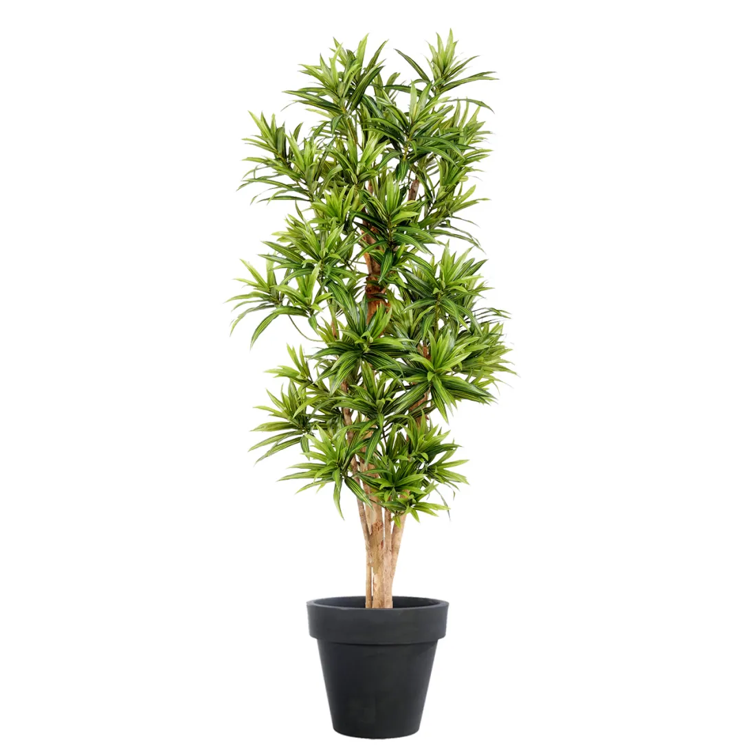 Dracaena artificiel  est composé de troncs en bois naturel et d'un feuillage en tissu tergal, soit en vert (deux tons de vert) soit panaché (vert/jaune), décliné en trois dimensions de 120 à 185 cm de hauteur vendu dans un pot PVC basique (support de plantation) plante artificielle