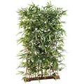 Les haies artificielles sont fabriquées avec un support en cannes de bambou naturel, un socle en bois et un feuillage synthétique en tergal (polyester) ou plastique. Elles peuvent être installées seules ou glissées dans une jardinière adaptée pour un rendu plus naturel.
